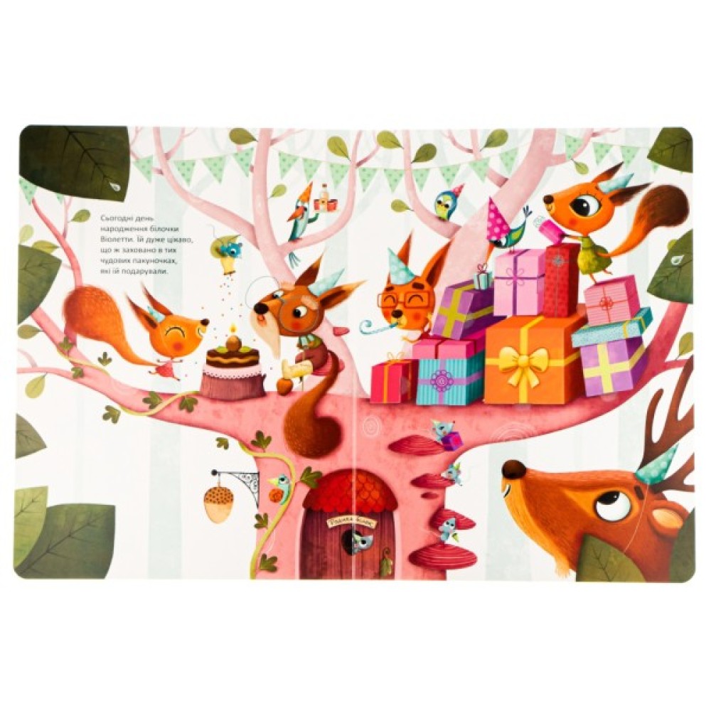 Перед вами книжка з сюрпризом! Деякі герої історії про білочку ховаються від маленьких читачів за яскравими клапанами. Читання казки перетвориться для дітвори на захопливу гру в хованки.