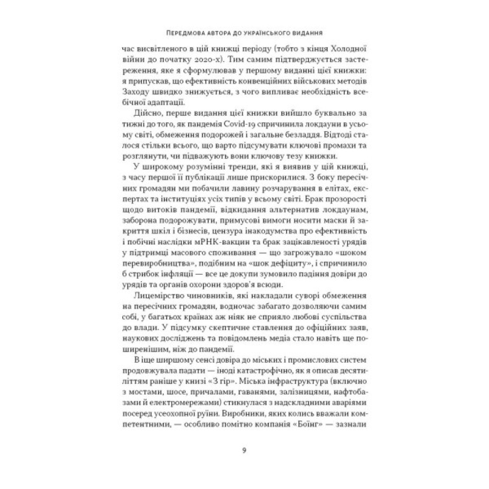 Автор майстерно розгортає перед читачем сучасний геополітичний ландшафт, пояснює стратегії великих і малих гравців, їхні мотиви та перспективи. Книжка змінює наше розуміння супротивників Заходу та водночас показує сценарії майбутнього світу в умовах зменшення впливу США.