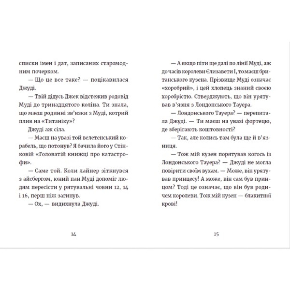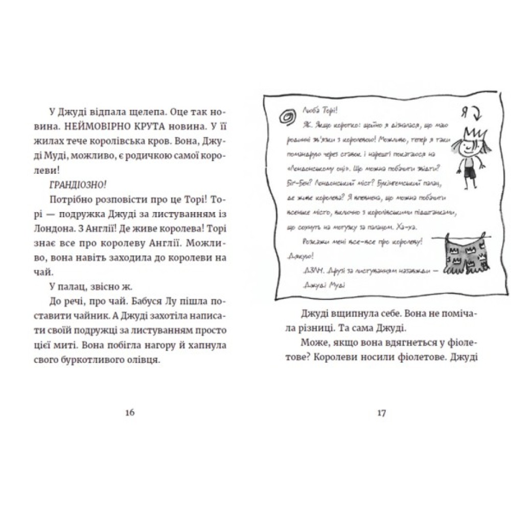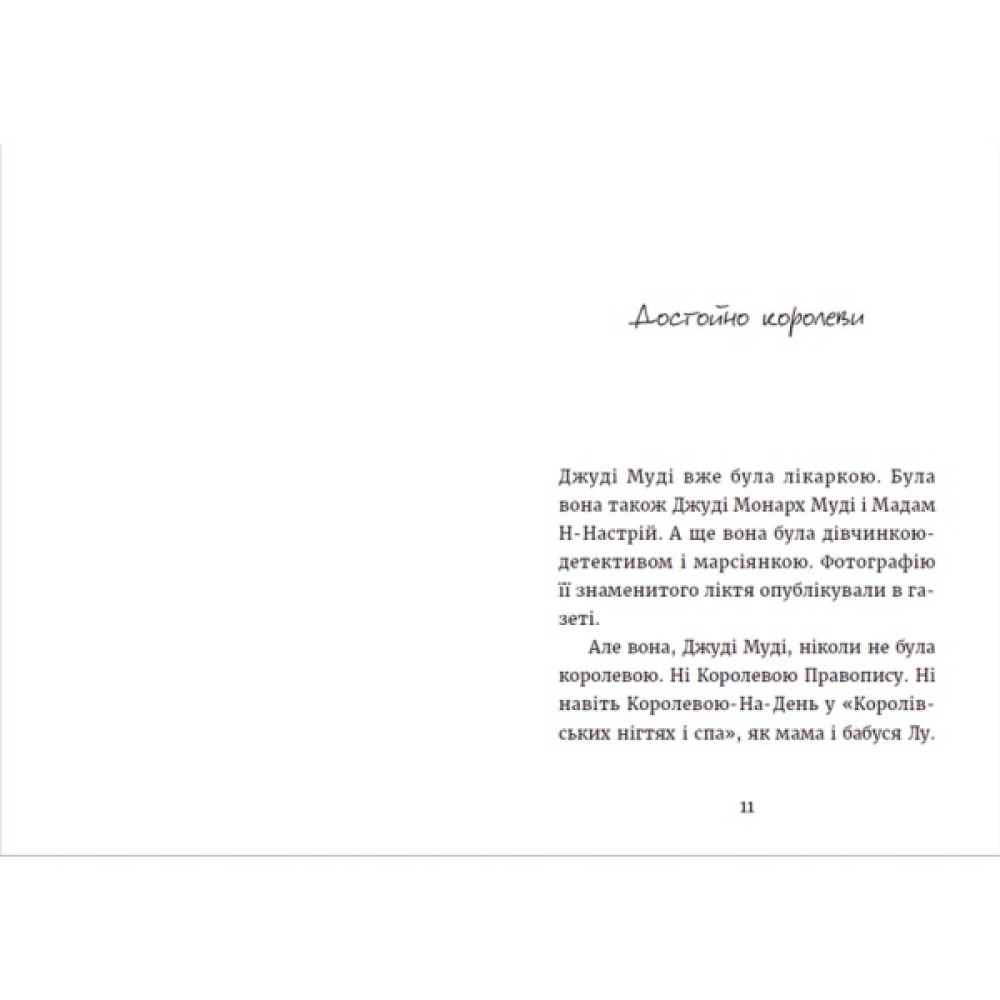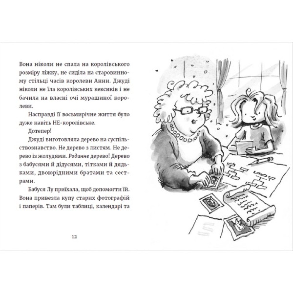 У Джуді Муді фіолетово-королівський настрій! Виявляється, колись Муді (тобто їхні сміливі предки) жили в Англії. Тож, якщо вірити нотаткам її дідуся, Джуді навіть може бути родичкою — королівські фанфари, будь ласка, — самої королеви! Може, вже час пакувати її фіолетовий халат для ночівлі у Букінгемському палаці? Але от халепа, а якщо її прадідусь у тринадцятому коліні не був королівської крові?..