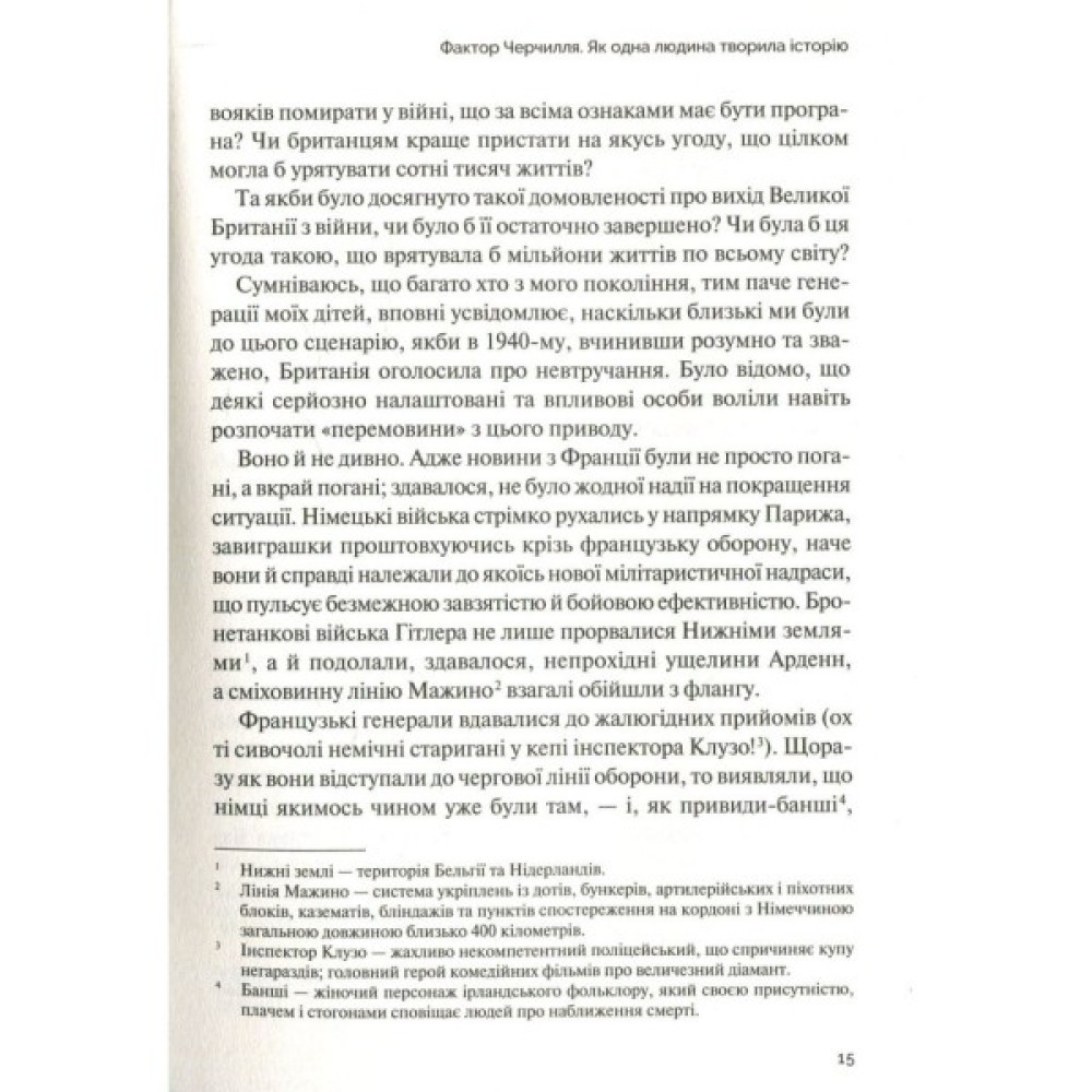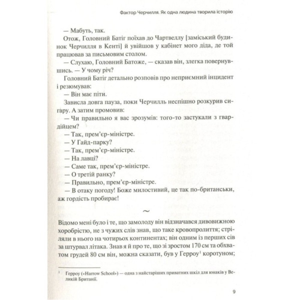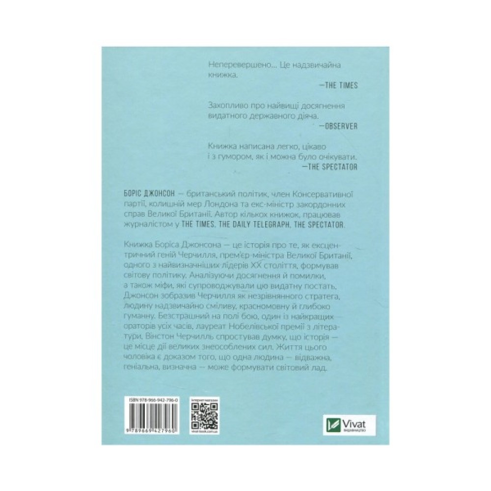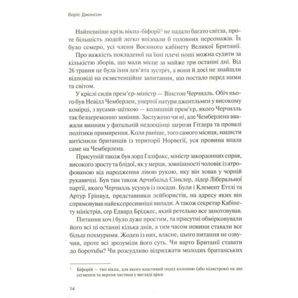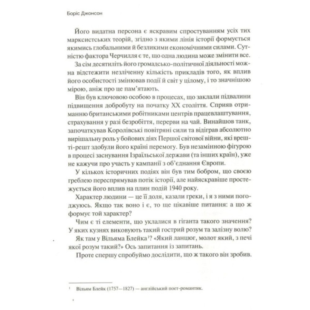 Книжка Боріса Джонсона — це історія про те, як ексцентричний геній Черчилля, прем’єр-міністра Великої Британії, одного з найвизначніших лідерів ХХ століття, формував світову політику. Аналізуючи досягнення й помилки, а також міфи, які супроводжували цю видатну постать, Джонсон зобразив Черчилля як незрівнянного стратега, людину надзвичайно сміливу, красномовну й глибоко гуманну. Безстрашний на полі бою, один із найкращих ораторів усіх часів, лауреат Нобелівської премії з літератури, Вінстон Черчилль спростував думку, що історія — це місце дії великих знеособлених сил.
