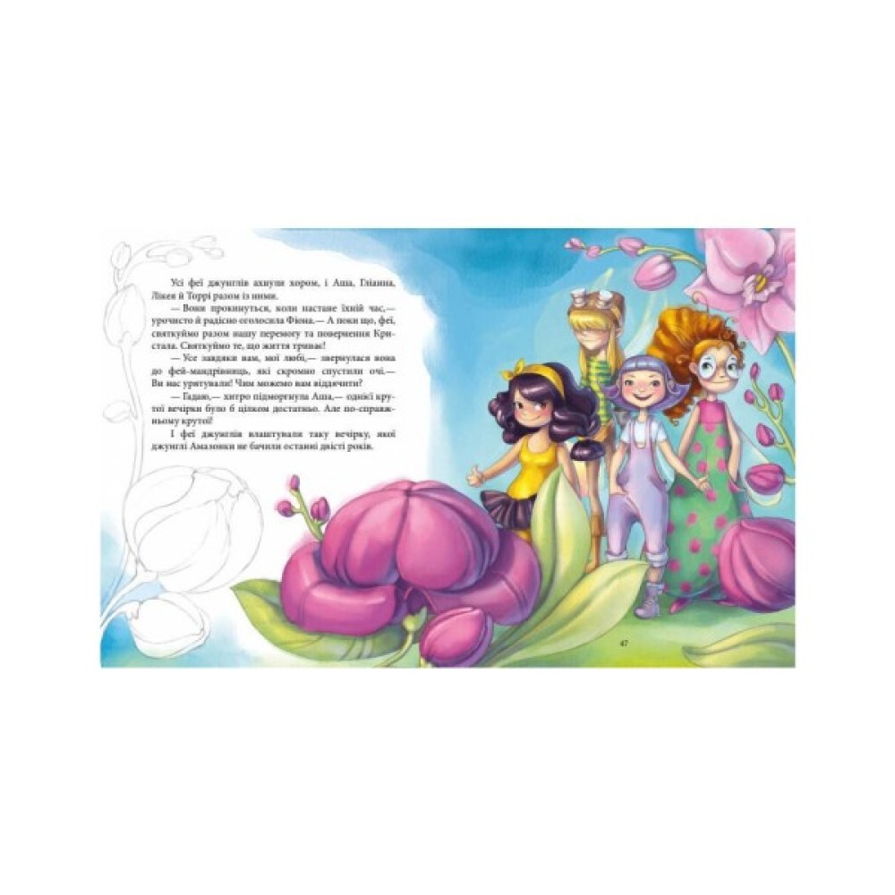 Гадаєте, що феї — це тендітні створіння, які лише пурхають з квітки на квітку в мереживних сукенках? А ось і ні! Вони, як і люди, бувають різні. Аша, Торрі, Лікея і Гліанна — чотири сучасні феї, які мешкають у великому Місті. І хоча вони крихітні, мов метелики, але відваги ім не бракне! Цього разу подруги вирушили до далекої Бразилії... де опинилися в центрі запеклої боротьби фей джунглів із небезпечними банановими павуками. Оце так! Хутчій розгортай книгу.