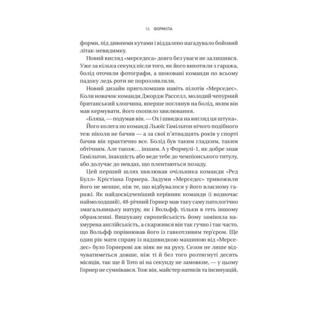 Джошуа Робінсон й Джонатан Креґґ також окреслюють важливість інновацій в автоперегонах: вони фокусуються на інженерних викликах, передових розробках і новітніх технологіях у трансформаціях Ф-1, наповнюючи текст справжньою спортивною драмою.