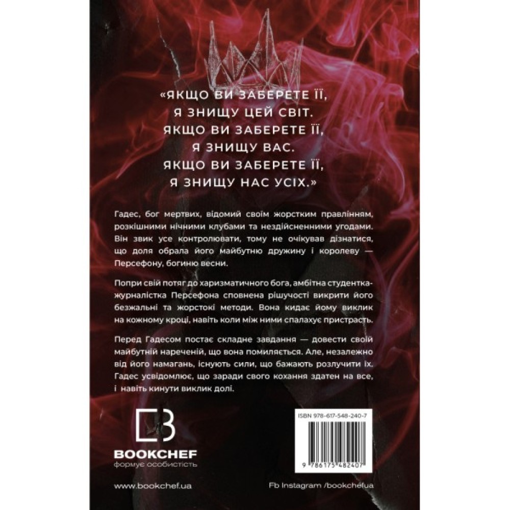 Гадес, бог мертвих, відомий своїм жорстким правлінням, розкішними нічними клубами та нездійсненними угодами. Він звик усе контролювати, тому не очікував дізнатися, що доля обрала для нього майбутню дружину і королеву — Персефону, богиню весни.