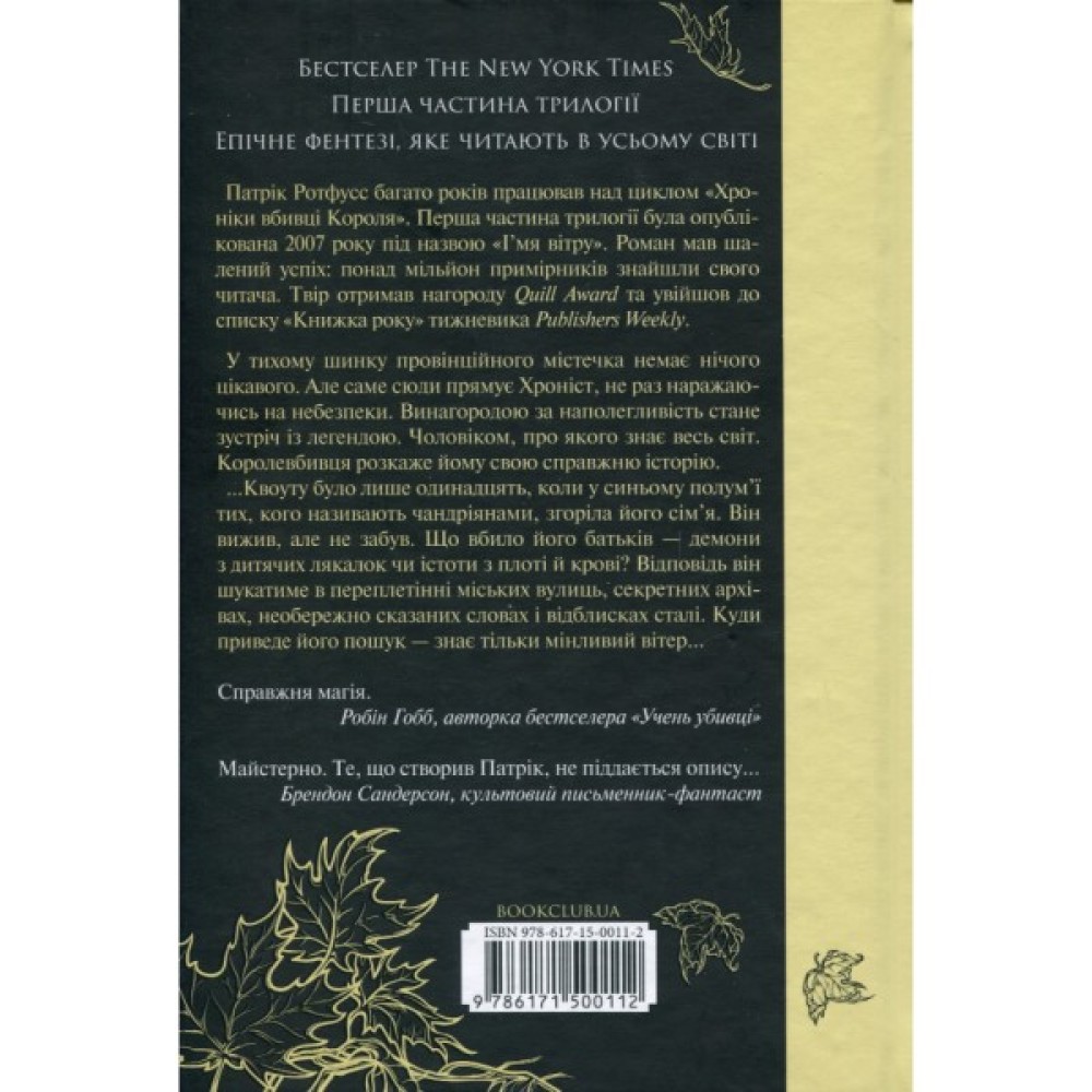 Книга Ім'я вітру - Патрік Ротфусс КСД (9786171500112)