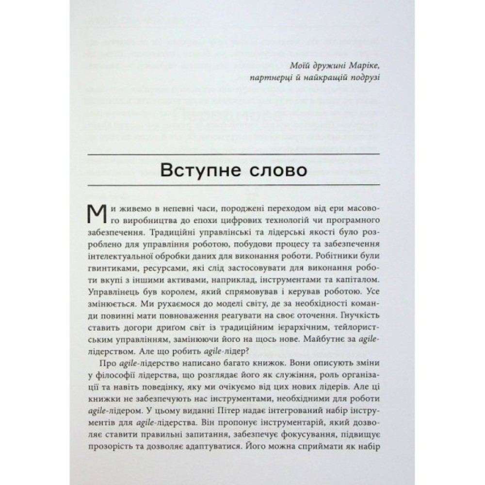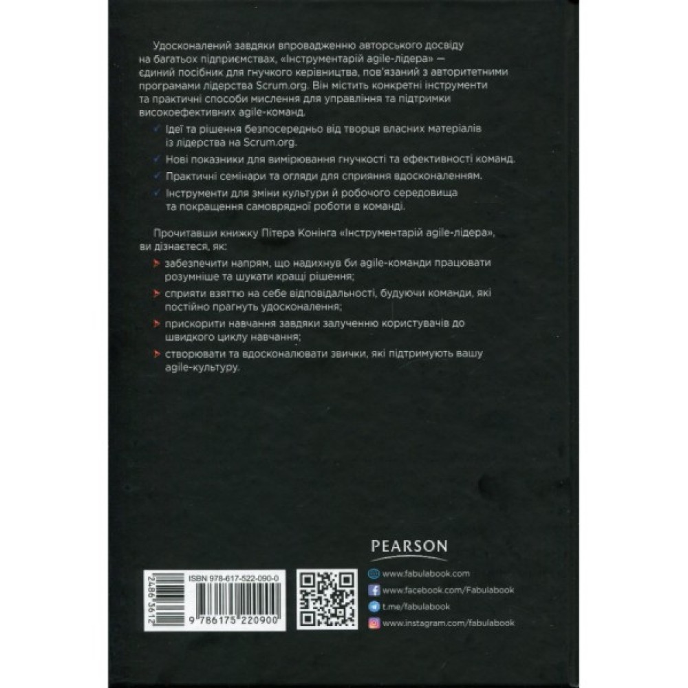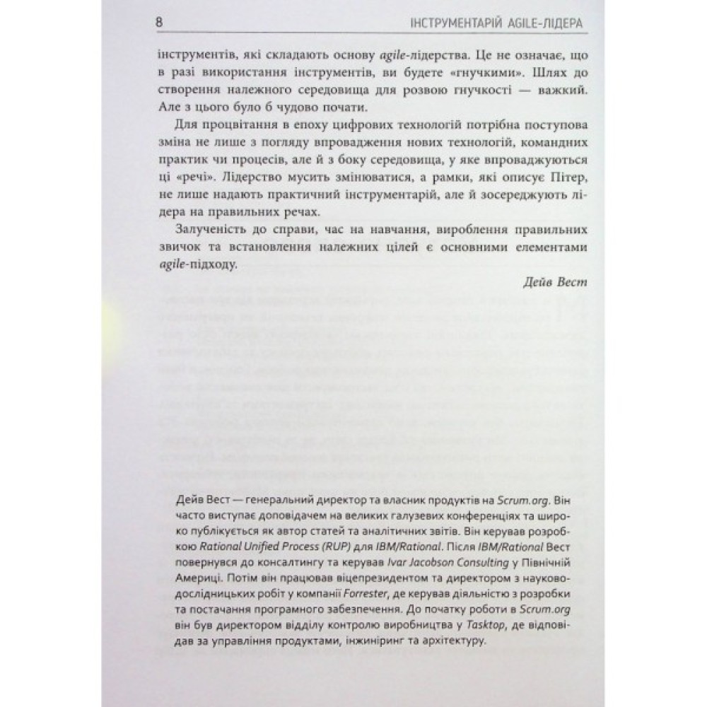 У книжці «Інструментарій agile-лідера» Пітер Конінг, давній лідер у сфері гнучкої розробки, надає безцінний управлінський штурвал для agile-лідерів та їхніх команд. З огляду на свій великий досвід, який допомагає лідерам отримувати більше цінності від гнучкої розробки, автор пропонує комплексний набір інструментів для постійного вдосконалення робочого середовища, зокрема структур, показників, методів проведення зустрічей тощо для створення успішних команд, які розробляють революційні продукти та послуги.