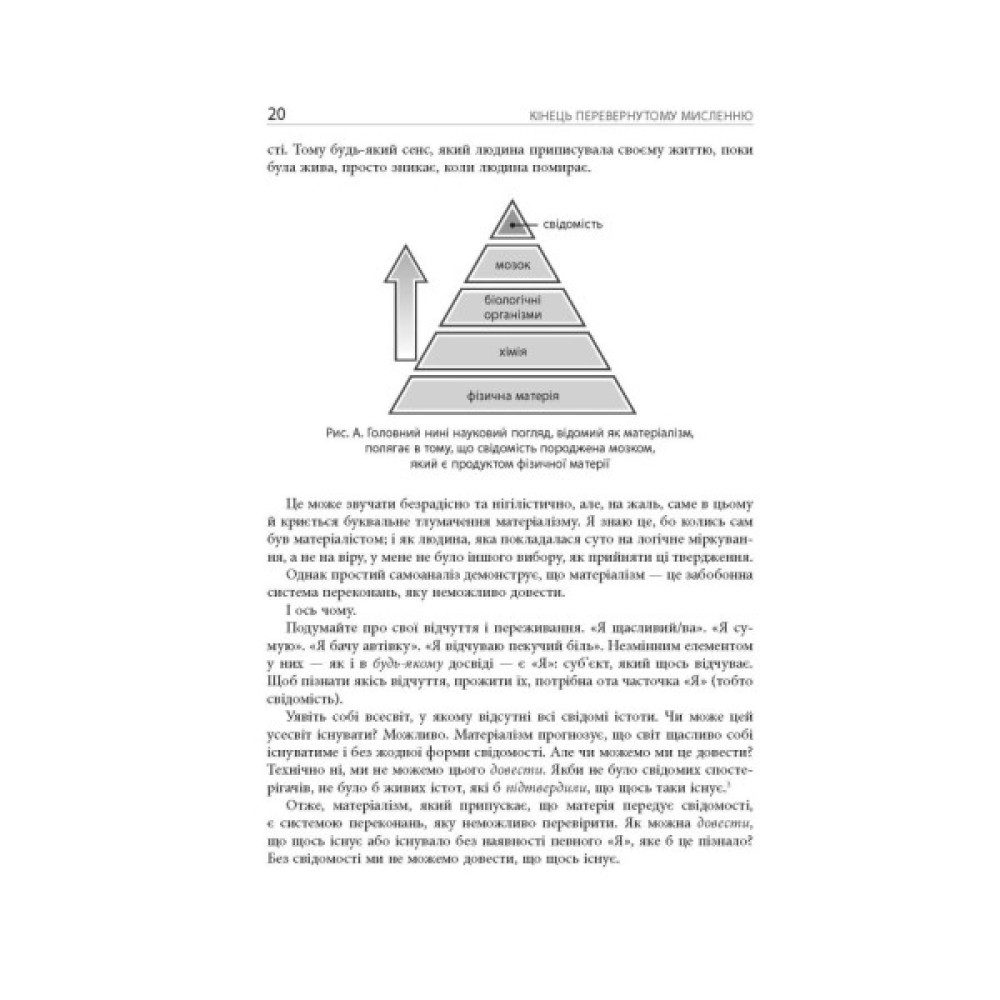 Автор цієї книжки, запеклий супротивник матеріалізму і чудовий оповідач, наводить переконливі докази на користь того, що основою реальності є свідомість, а не матерія. Він спирається на результати численних наукових експериментів, цитує праці видатних учених, надає власні висновки і спонукає читача до міркувань стосовно природи дистанційного бачення і телепатії, передбачення і психокінезу, присмертного досвіду і пам’яті про попередні життя.