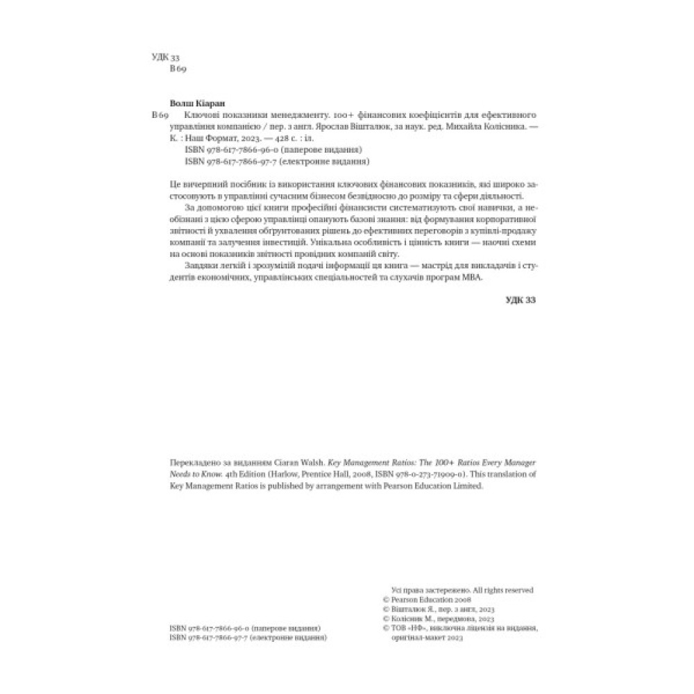 Це вичерпний посібник з використання ключових фінансових показників, які широко застосовують в управлінні сучасним бізнесом безвідносно до розміру та сфери діяльності. За допомогою цієї книги професійні фінансисти систематизують свої навички, а необізнані з цією сферою управлінці опанують базові знання: від формування корпоративної звітності й ухвалення обґрунтованих рішень до ефективних переговорів з купівлі-продажу компанії та залучення інвестицій.