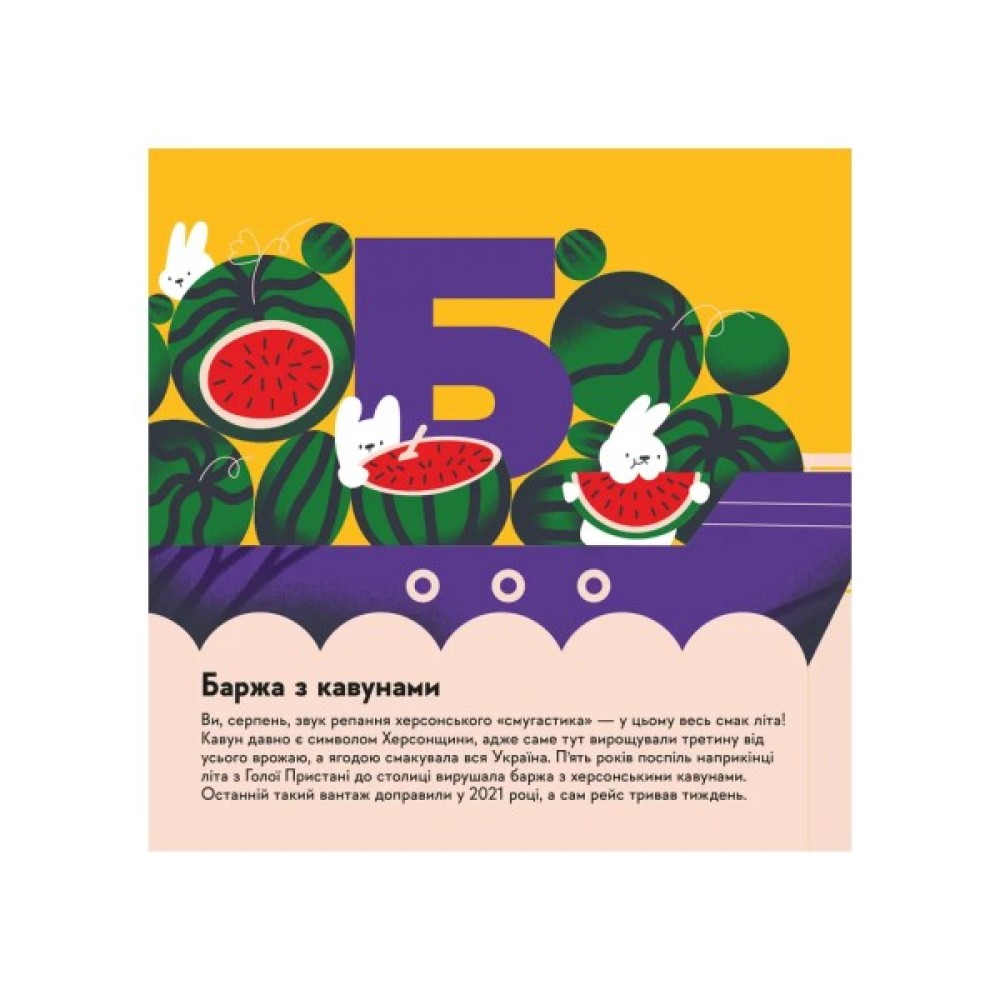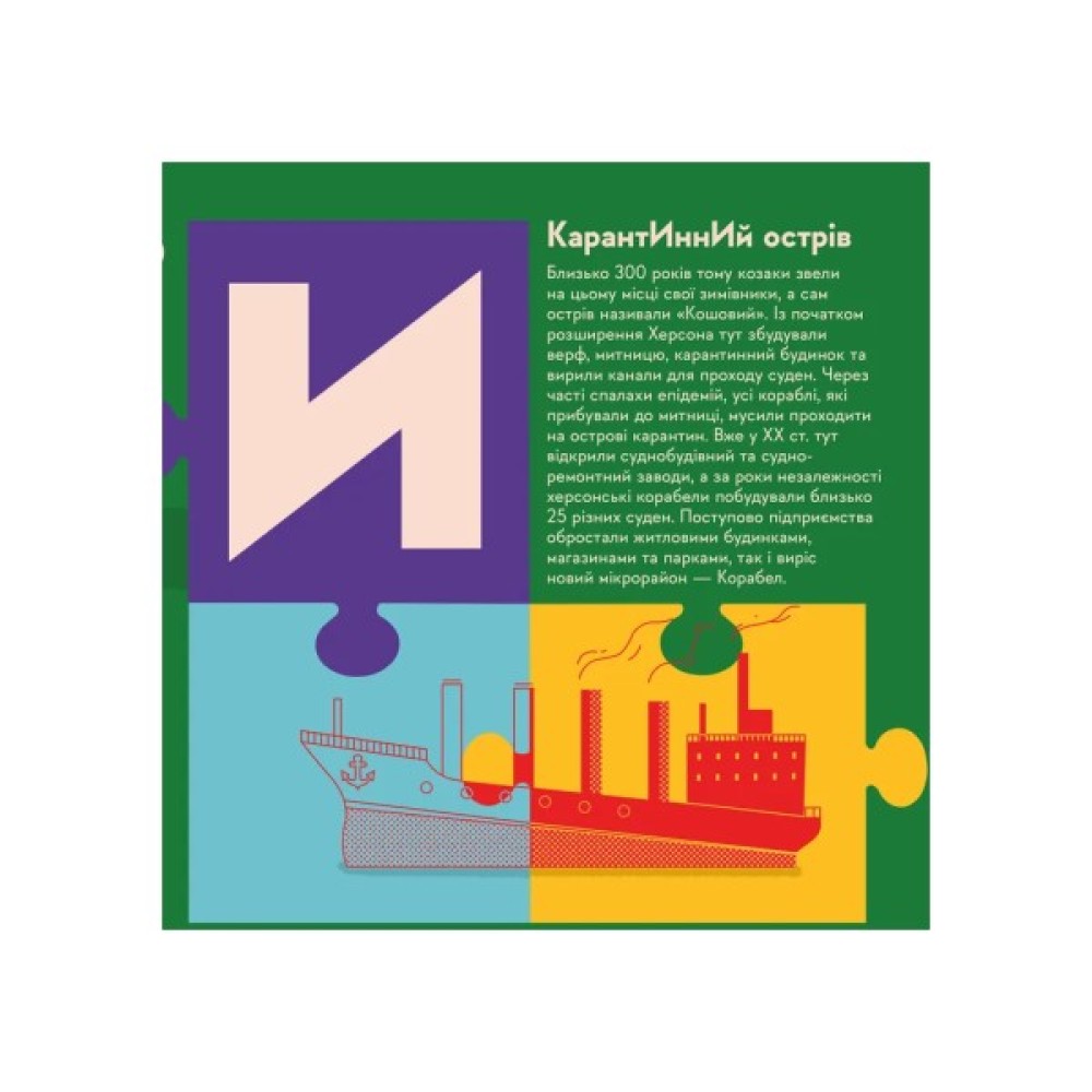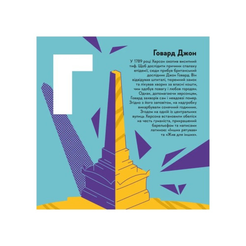 Привіт! Я — книжечка про місто мореплавства та хоробрих людей — Херсон. Колись тут проживали кочові племена та козаки, а тепер будують судна та вирощують найсолодші кавуни. Мої автори завітали в перуанський куточок, спробували чабанську шурпу та краєм ока побачили рідкісних тварин Асканії-Нової, а все для того, аби створити абетку про наш степовий край. Кожна літера — це ДНК міста, унікальна риса, без якої немислима його історія. А щоб Херсону не було самотньо, автори створили цілу серію книжечок про незламні міста України. Тож збирай усю сімейку і ставай домашнім експертом з історії найхоробрішої нації XXI століття.