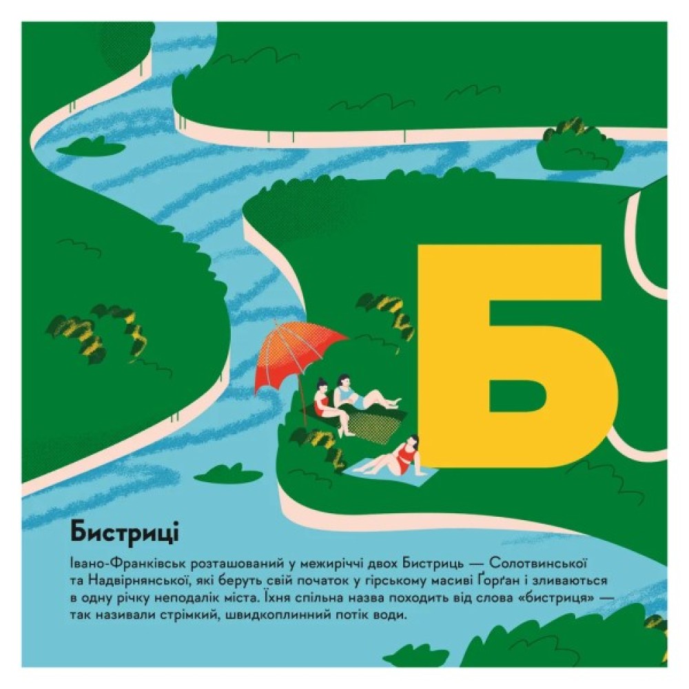 Привіт! Я — книжечка про місто між двох річок — Івано-Франківськ. Колись поблизу ратуші вороги карали опришків, а тепер тут працюють відповідальні бізнеси та піклуються про місцеву спадщину. Мої автори прогулялися найменшою вулицею, побували в найстарішій лазні та дізналися всю правду про пам’ятник яйцю, а все для того, аби створити абетку про наш гірський край. Кожна літера — це ДНК міста, унікальна риса, без якої немислима його історія. А щоб Івано-Франківську не було самотньо, автори створили цілу серію книжечок про незламні міста України. Тож збирай усю сімейку і ставай домашнім експертом з історії найхоробрішої нації XXI століття.