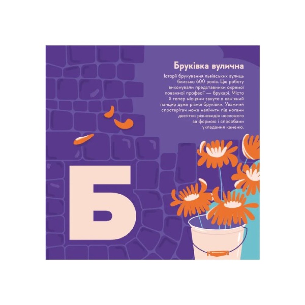 Привіт! Я — книжечка про місто з найсмачнішою кавою та найвеличнішими храмами — Львів. Про славетне місто короля Данила, де кожний камінчик бруківки може розповісти історію, де кожна кам’яниця шепоче легенди про минуле, де гуркочуть жовті трамваї та часто дощить. Мої автори поблукали вузькими вуличками і створили файну абетку про місто Лева. Кожна літера — це ДНК міста, унікальна риса, без якої немислима його історія. А щоб Львову не було самотньо, автори «Книги-мандрівки» створили цілу серію книжечок про незламні міста України. Тож збирай усю сімейку і ставай домашнім експертом з історії найхоробрішої нації XXI століття.