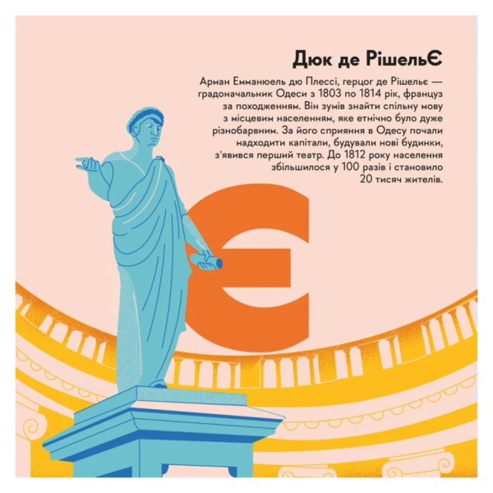 Привіт! Я — книжечка про підприємливе і самобутнє місто — Одесу. З одного боку її омиває Чорне море, а з іншого — лимани. Колись чумаки їздили сюди по сіль, а зараз зерно, яке сюди привозять, годує все Середземномор’я. Десятки народів, які проживали в Одесі, витворили її багату історію й особливий колорит. Мої автори зазирнули в кожен дворик, посмакували бичків на Привозі та спустилися в найбільші катакомби, а все для того, аби створити абетку про нашу морську столицю. Кожна літера — це ДНК міста, унікальна риса, без якої немислима його історія. А щоб Одесі не було самотньо, автори створили цілу серію книжечок про незламні міста України. Тож збирай усю сімейку і ставай домашнім експертом із історії найхоробрішої нації XXI століття.