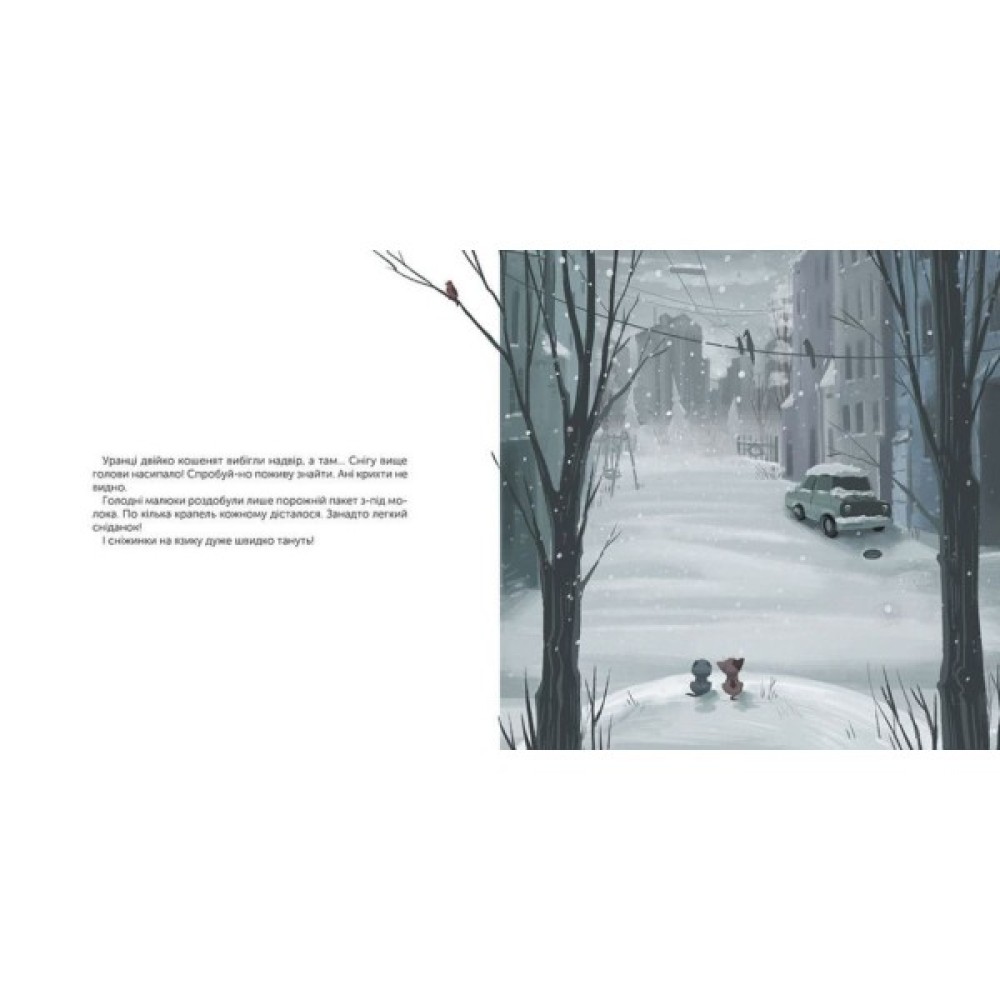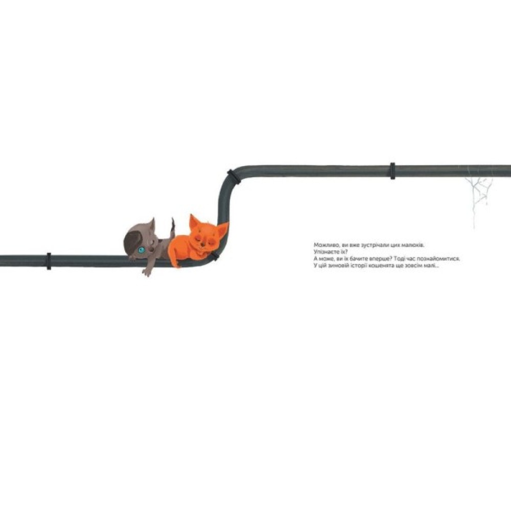 Шестеро маленьких кошенят опинилися на зимовій вулиці, де їм холодно й голодно... Але вони не з тих, хто скиглить і впадає в розпач. Натомість кошенята гуртуються і перетворюють зиму у веселу забаву: бавляться у піжмурки, прокладають лабіринт у снігу, уявляючи себе археологами, будують дуже затишну снігову котохатку. А тоді знаходять чим її прикрасити. Герої-кошенята захоплять малюків своєю жвавістю та багатою уявою і підкажуть чимало ідей для зимових ігор.