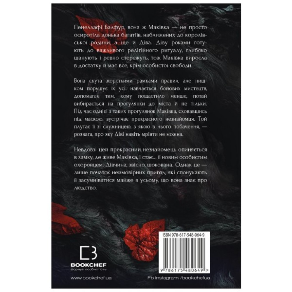 Пенеллафі Балфур, вона ж Маківка — не просто осиротіла донька багатіїв, наближених до королівської родини, а ще й Діва. Діву роками готують до важливого релігійного ритуалу, глибоко шанують і ревно стережуть, тож Маківка виросла в достатку й має все, крім особистої свободи.