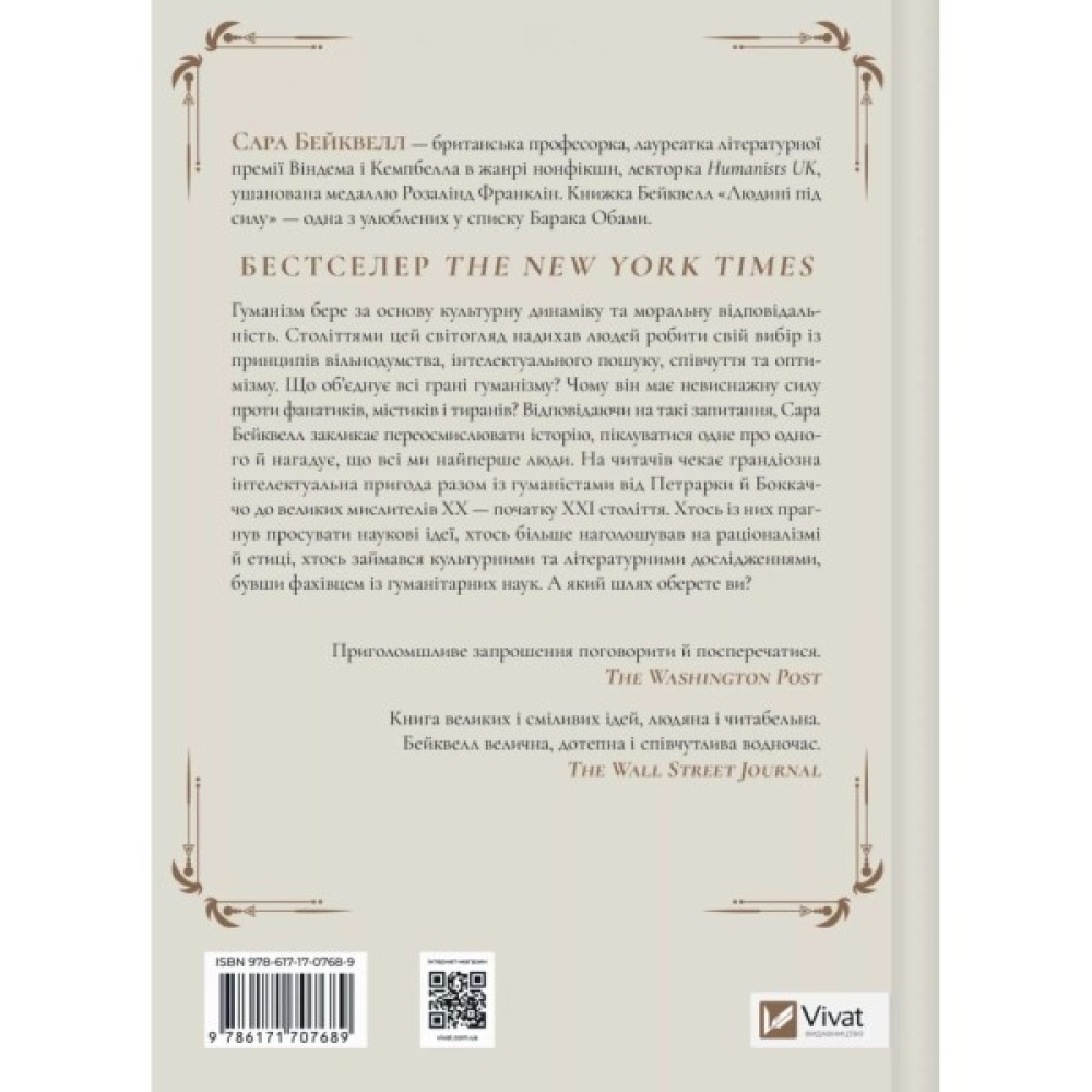 Книга «Людині під силу: сімсот років гуманістичного вільнодумства, пошуку та надії» — це інтелектуальний нонфікшн від британської письменниці та професорки Сари Бейтквелл. Що таке гуманістична традиція, і як подана етична площина впливає на світогляд людини? Авторка ставить це запитання на перших сторінках книги, але не підводить до однозначного висновку. Вона підштовхує читачів до самостійного визначення концепції гуманізму, розпалюючи багаття для думок.
