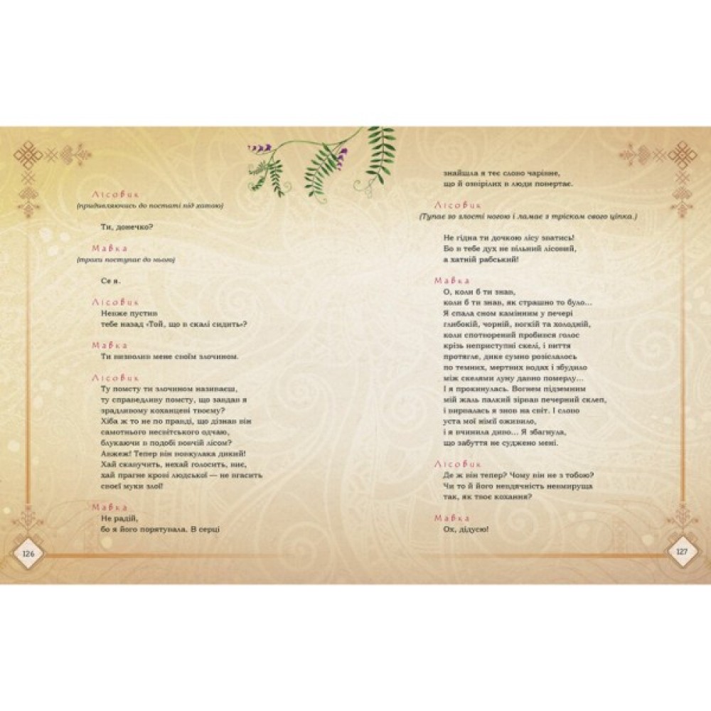 Минають роки, минають десятиліття, але ми знову й знову повертаємось до деяких літературних творів... Сьогодні, коли поширюється інтерес до нашої історії та культури, пропонуємо вам перечитати драму-феєрію відомої української письменниці й поетеси Лесі Українки. Цей твір розповідає про зв’язок людини і природи, про безсмертя вічних людських цінностей, добро і зло; про пошук гармонії, кохання і зраду; про матеріальне і духовне в житті. Це гімн справжньому коханню. Завдяки прекрасним ілюстраціям дивовижного краю з майбутнього анімаційного фільму «Мавка. Лісова пісня» пориньте у цей фантастичний світ і насолоджуйтеся колоритною мелодійною українською мовою. Сьогодні за допомогою сучасних технологій ми маємо можливість ще більше заглибитися у драму-феєрію. За допомогою QR-коду можна прослухати дивні народні волинські мелодії, що їх так цінувала поетеса.