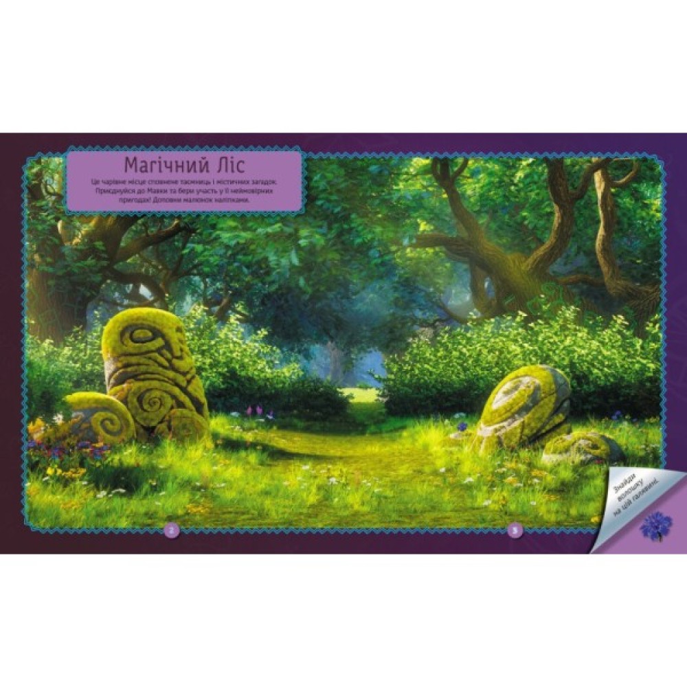 Зо допомогою наліпок ти зможеш створити власну яскраву історію про пригоди Мавки та ії друзів!