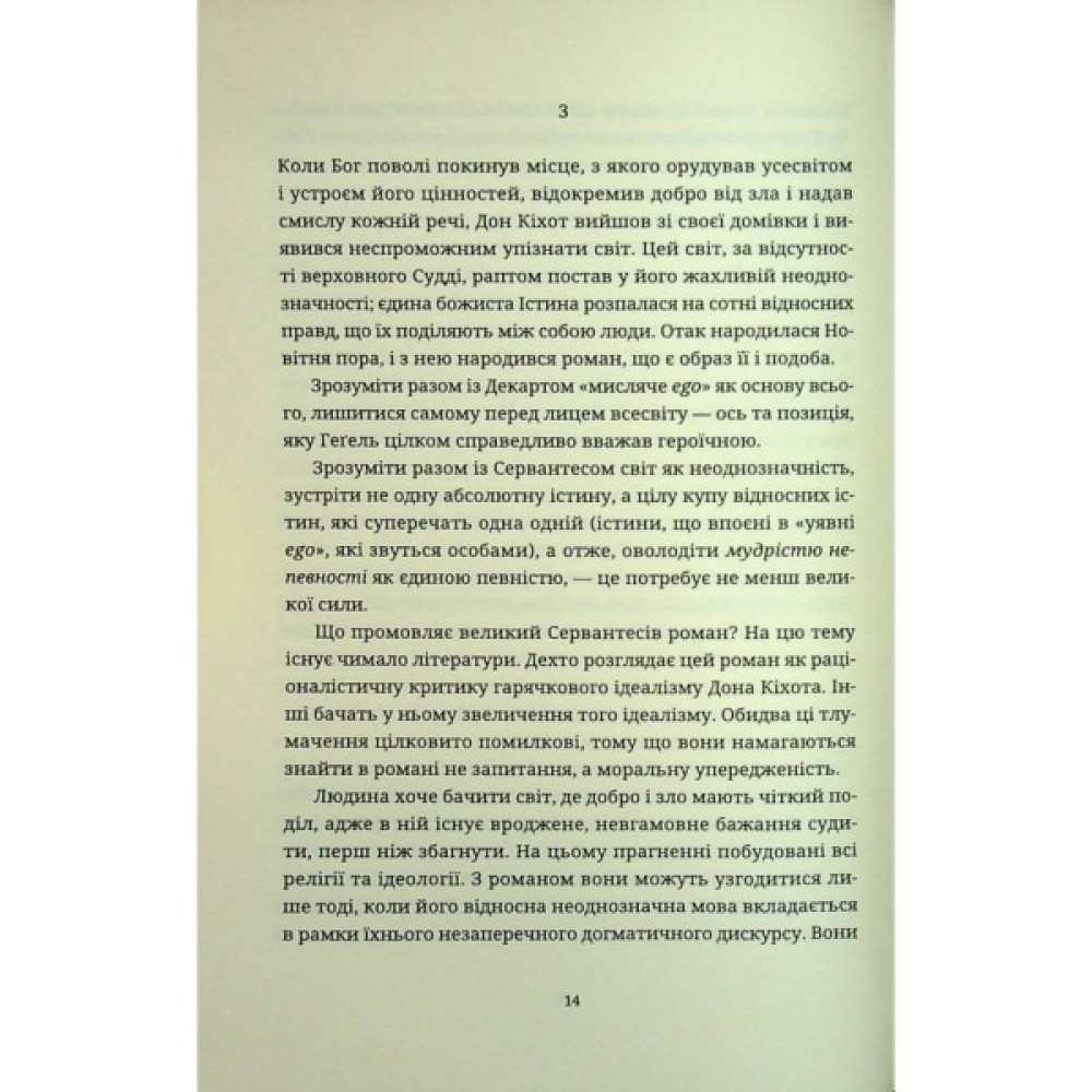 Кундера окреслює надважливу для історії Європи роль роману, яка полягає в тому, щоб захистити людство від забуття. Роман для письменника — не просто жанр чи форма оповіді, а спосіб людського існування.