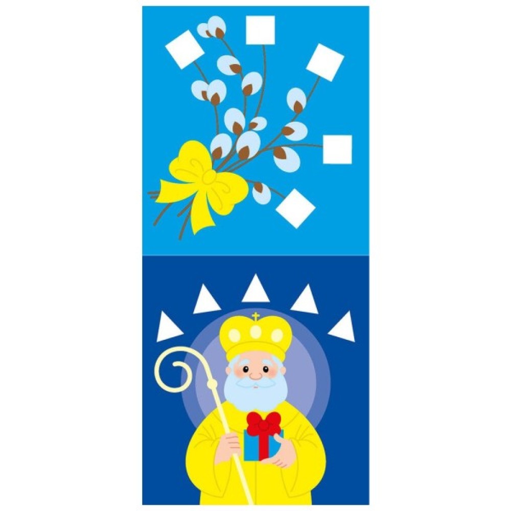 Створюємо мозаїку з наліпок! - Доповнюємо прості яскраві малюнки. - Клеїмо наліпки-фігурки. - Повторюємо кольори. - Знайомимося з рідною культурою змалечку, доповнюючи зображення великоднього кошика, колядників, святого Миколая…