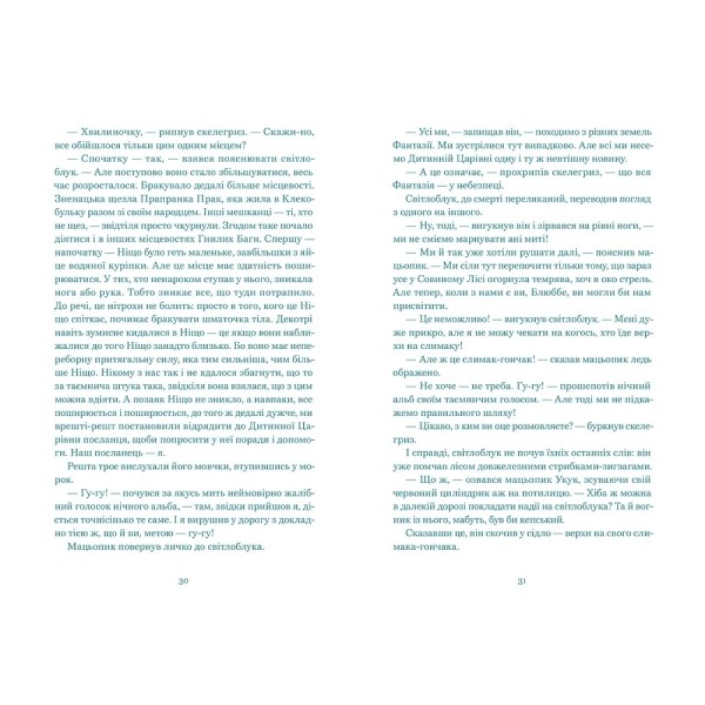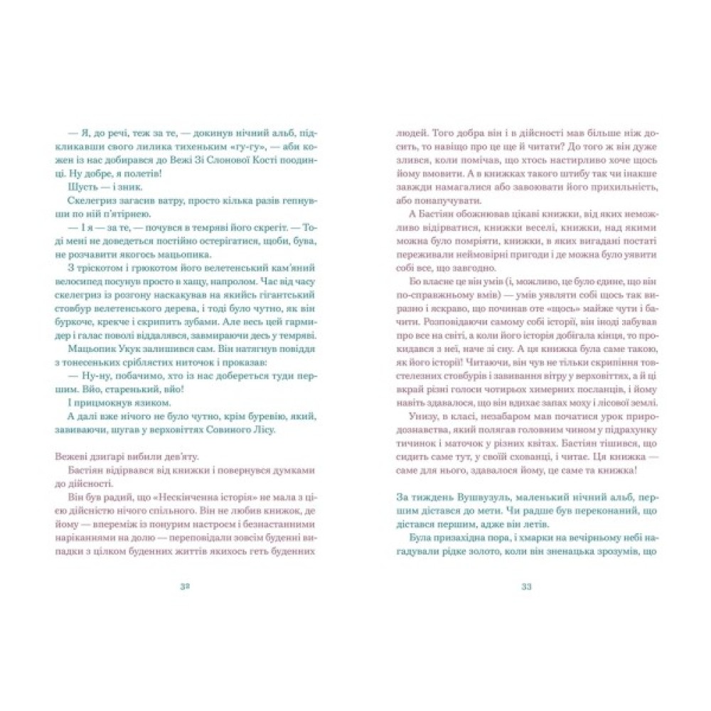 «Нескінченна історія» Міхаеля Енде стала «золотою класи­кою» дитячої літератури, була перевидана багатьма мовами й успішно екранізована. Це книга про книгу, яка так полонить увагу звичайного хлопчика Бастіана, що він потрапляє в іншу реальність, у чарівну країну Фантазію, щоб вплинути на хід подій і порятувати Дитинну Царівну.