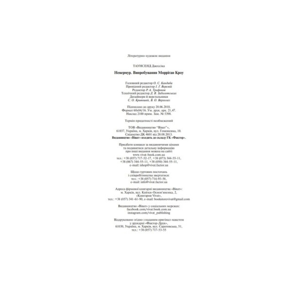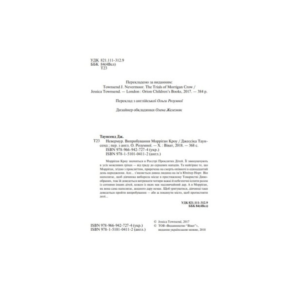 Пропонуємо вашій увазі книгу Джессіки Таунсенд "Невермур. Випробування Морріган Кроу" від видавництва Vivat.