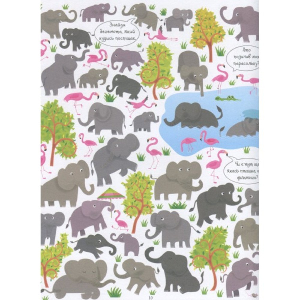 Запрошуємо найуважніших та найдопитливіших поринути в неповторний світ тварин! На кожній сторінці цієї дивовижної книги — безліч диких і домашніх тварин, комах і риб, а також різноманітних предметів та цікавих деталей, які треба знайти, порівняти і порахувати.