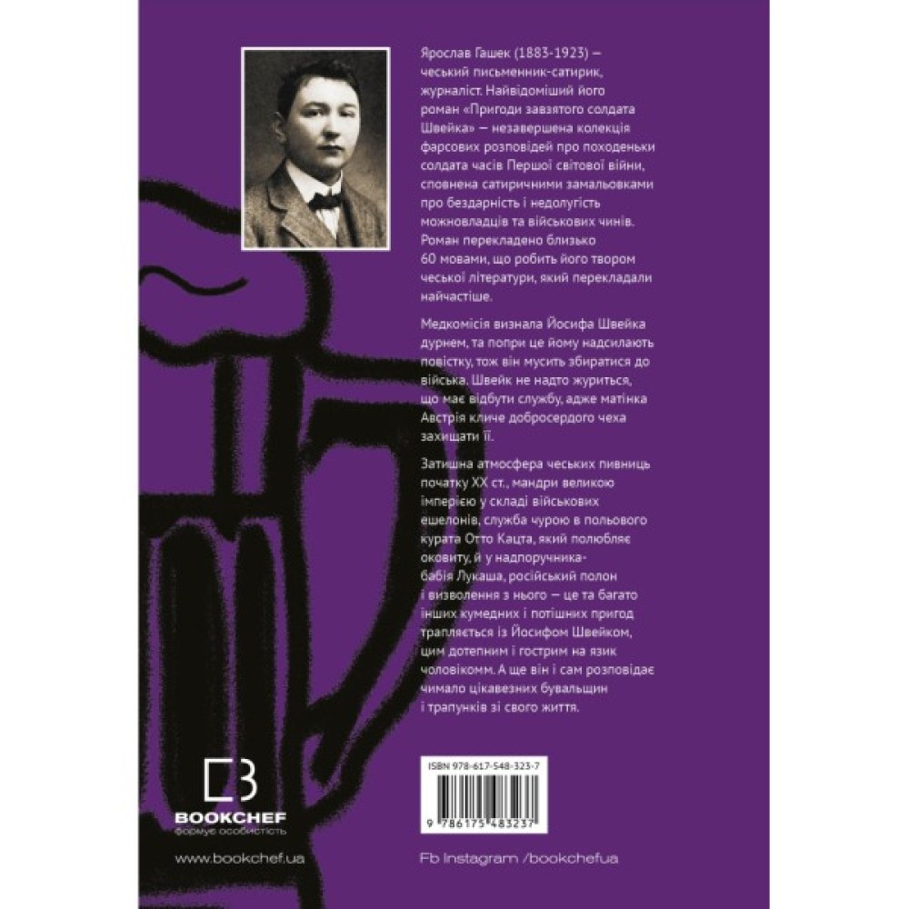 Ярослав Гашек (1883-1923) — чеський письменник-сатирик, журналіст. Найвідоміший його роман «Пригоди завзятого солдата Швейка» — незавершена колекція фарсових розповідей про походеньки солдата часів Першої світової війни, сповнена сатиричними замальовками про бездарність і недолугість можновладців та військових чинів. Роман перекладено близько 60 мовами, що робить його твором чеської літератури, який перекладали найчастіше.
