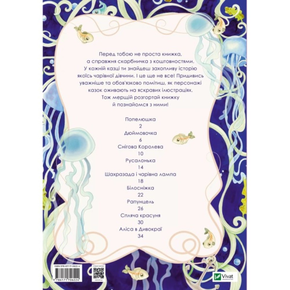 Перед тобою не проста книжка, а справжня скарбничка з коштовностями. У кожній казці ти знайдеш захопливу історію якоїсь чарівної дівчини. І це ще не все