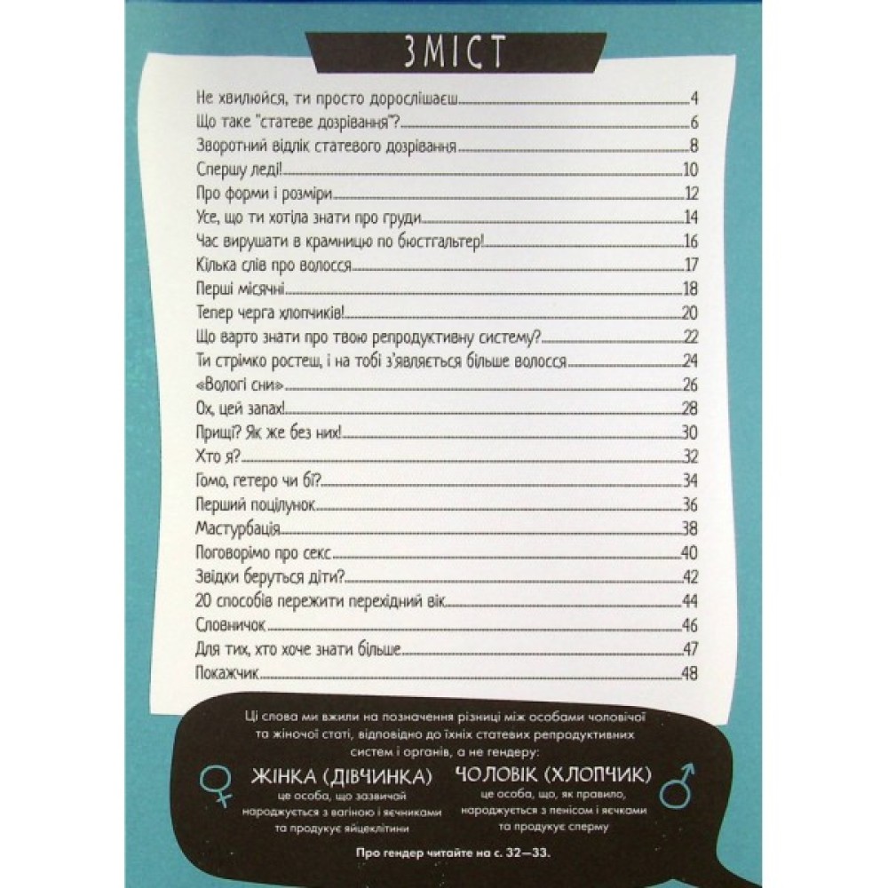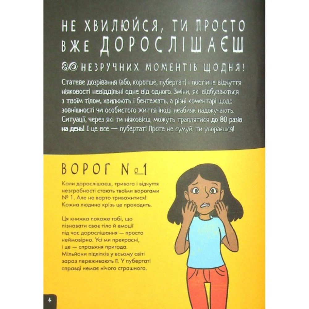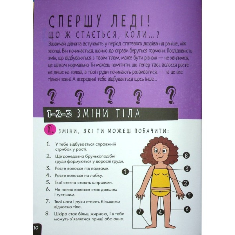 Є питання, які не дуже зручно обговорювати з батьками і не надто приємно — з друзями. Про зміни форм і розмірів, про волосся, перші місячні, про потіння, «вологі» сни, прищі… Так, це все — перехідний вік. Проте жодних жахіть!