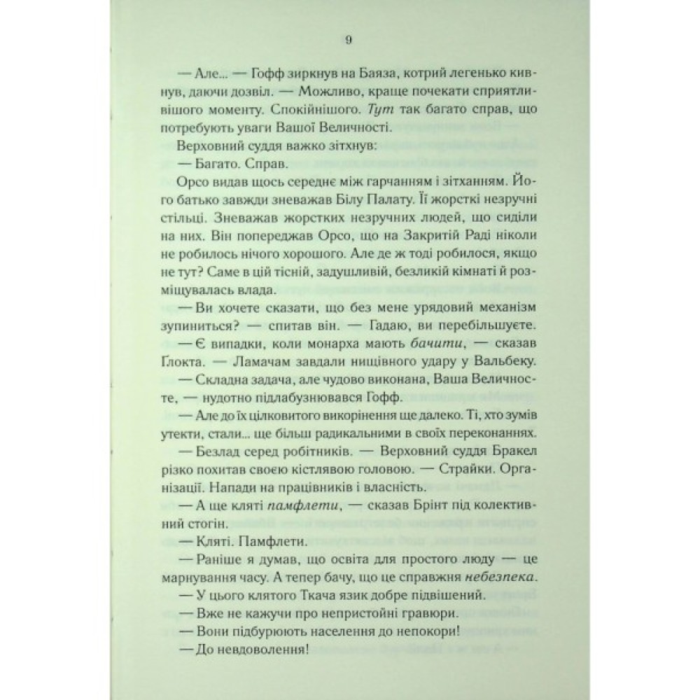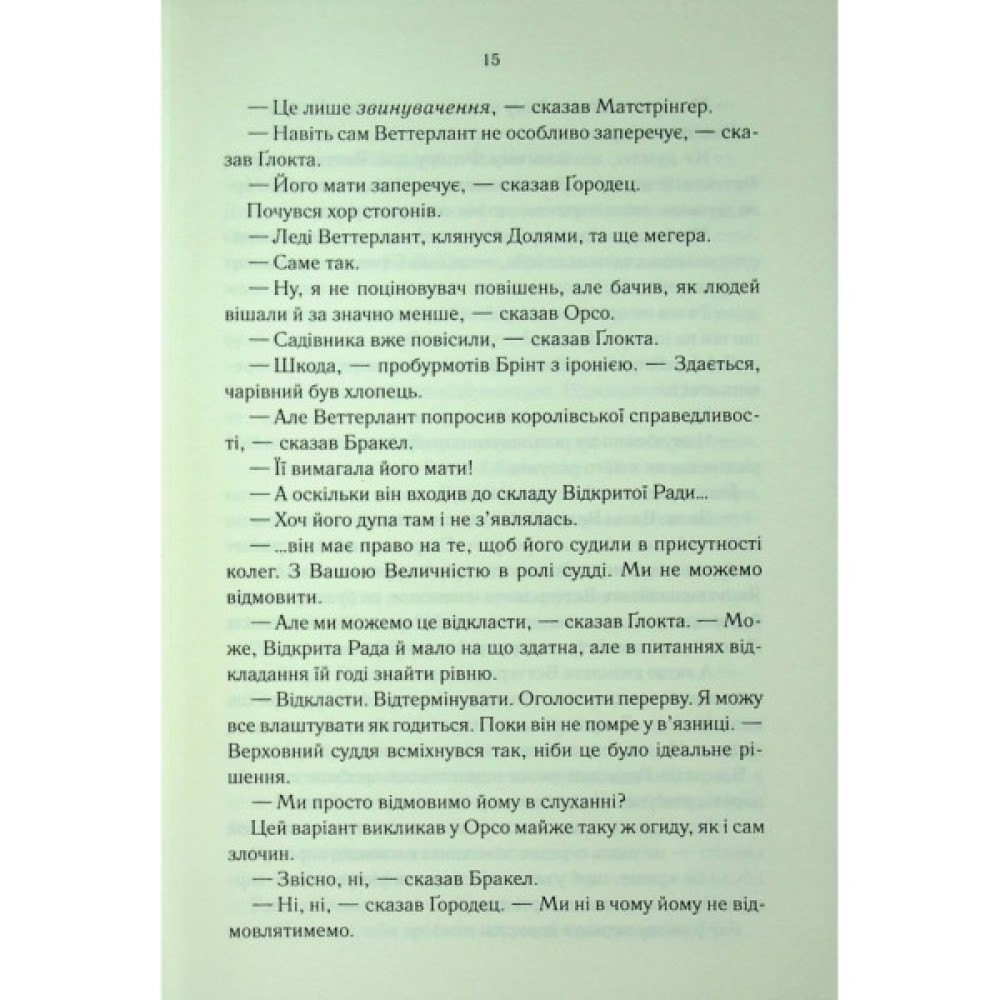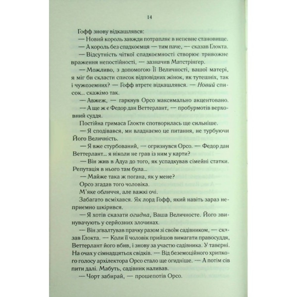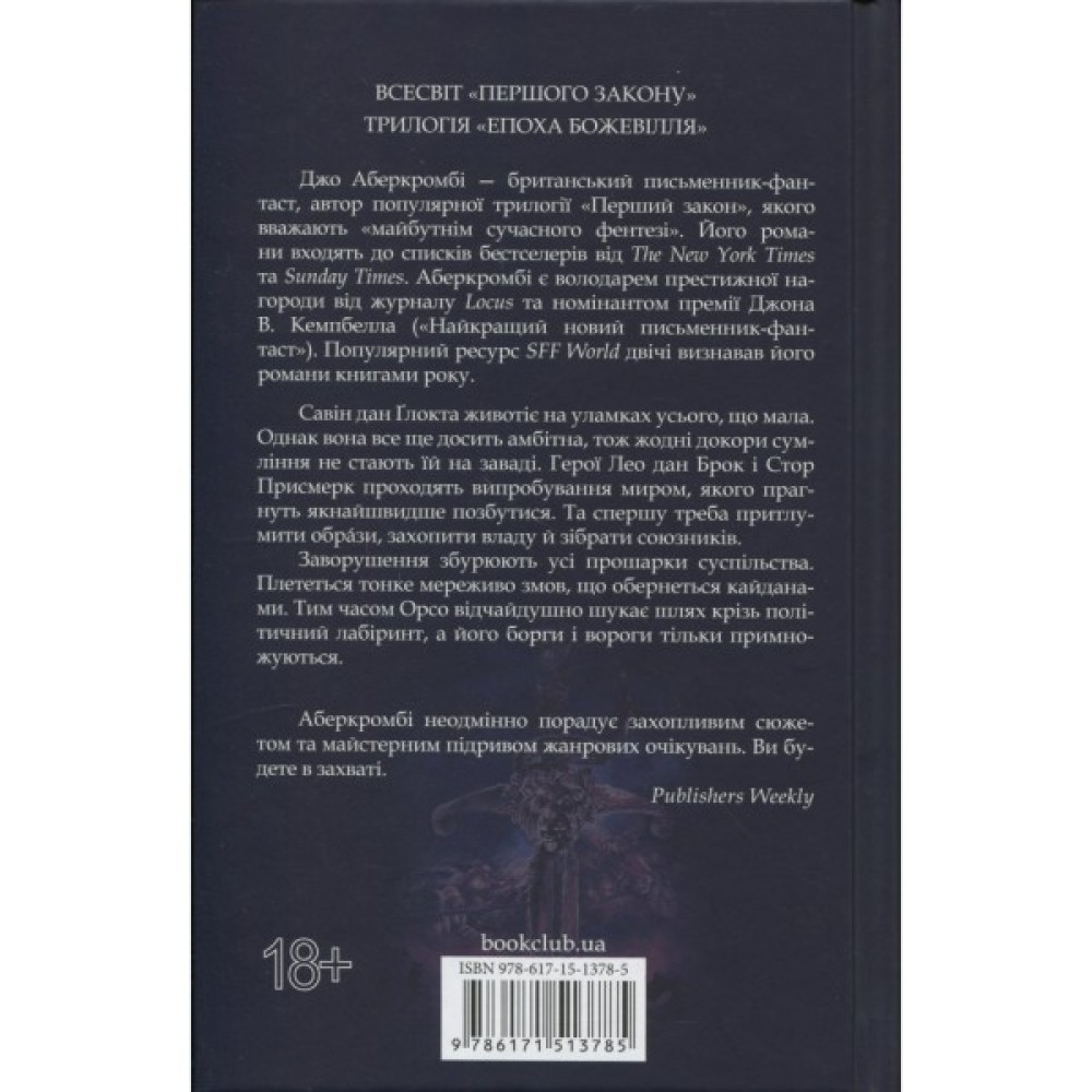Савін дан Ґлокта животіє на уламках усього, що мала. Однак вона все ще досить амбітна, тож жодні докори сумління не стають їй на заваді. Герої Лео дан Брок і Стор Присмерк проходять випробування миром, якого прагнуть якнайшвидше позбутися. Та спершу треба притлумити образи, захопити владу й зібрати союзників.