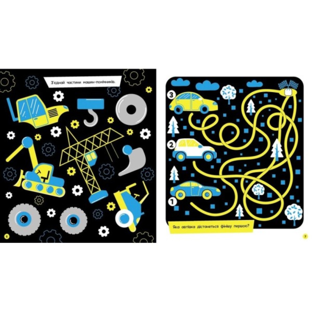 Цікавлять техніка та різноманітні машини? Тоді ця книжка-активіті по-справжньому захопить тебе! На її сторінках є багато головоломок, ігор та пригод із технікою. Ти будеш шукати, малювати, лічити, «прокачуючи» свої навички. А завдяки флуоресцентним сторінкам завдання про транспорт, роботів та інструменти закарбуються в пам'яті. Нумо розвиватися яскраво!