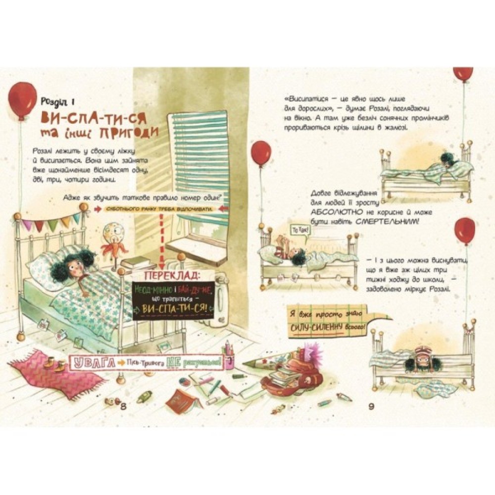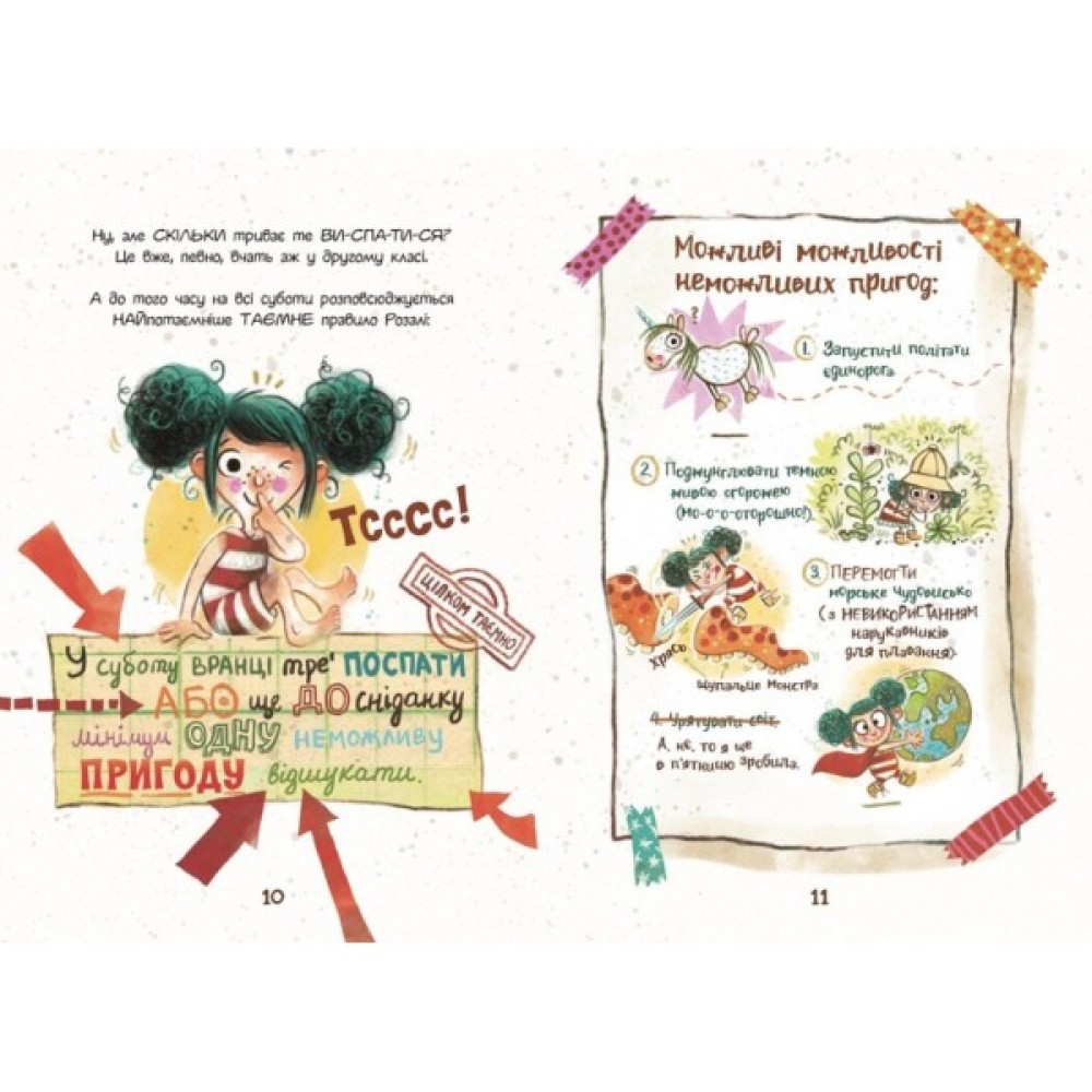 Яке татусеве правило номер один для суботнього ранку? Розалі знає його напам'ять: виспатися попри все! Але що робити, коли о сьомій ранку вже не спиться? Залишатися в ліжку? У жодному разі, бо будь-якої миті з-за рогу може вигулькнути пригода! На щастя, у заспаного тата з'являється хороша ідея. «Може, ти сьогодні сходиш за булочками?» — пропонує він. Чи зможе Розалі зробити це? Звичайно, зможе, адже вона вже три тижні в першому класі! А з уявою ця пригода стане ще й веселою!