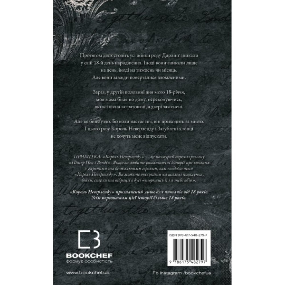 Хоч «Король Неверленду» і черпає натхнення з роману «Пітер Пен і Венді», та ця книга створена виключно для дорослої аудиторії. Історія занурить вас у світ романтично-еротичних пригод з харизматичними та безкомпромісними героями. Ви зіткнетеся з палкими почуттями, напруженими конфліктами та бурхливими емоціями, що створюють неповторну атмосферу твору. Приготуйтесь до першої пригоди з історії, яка змінить ваше уявлення про казки назавжди.