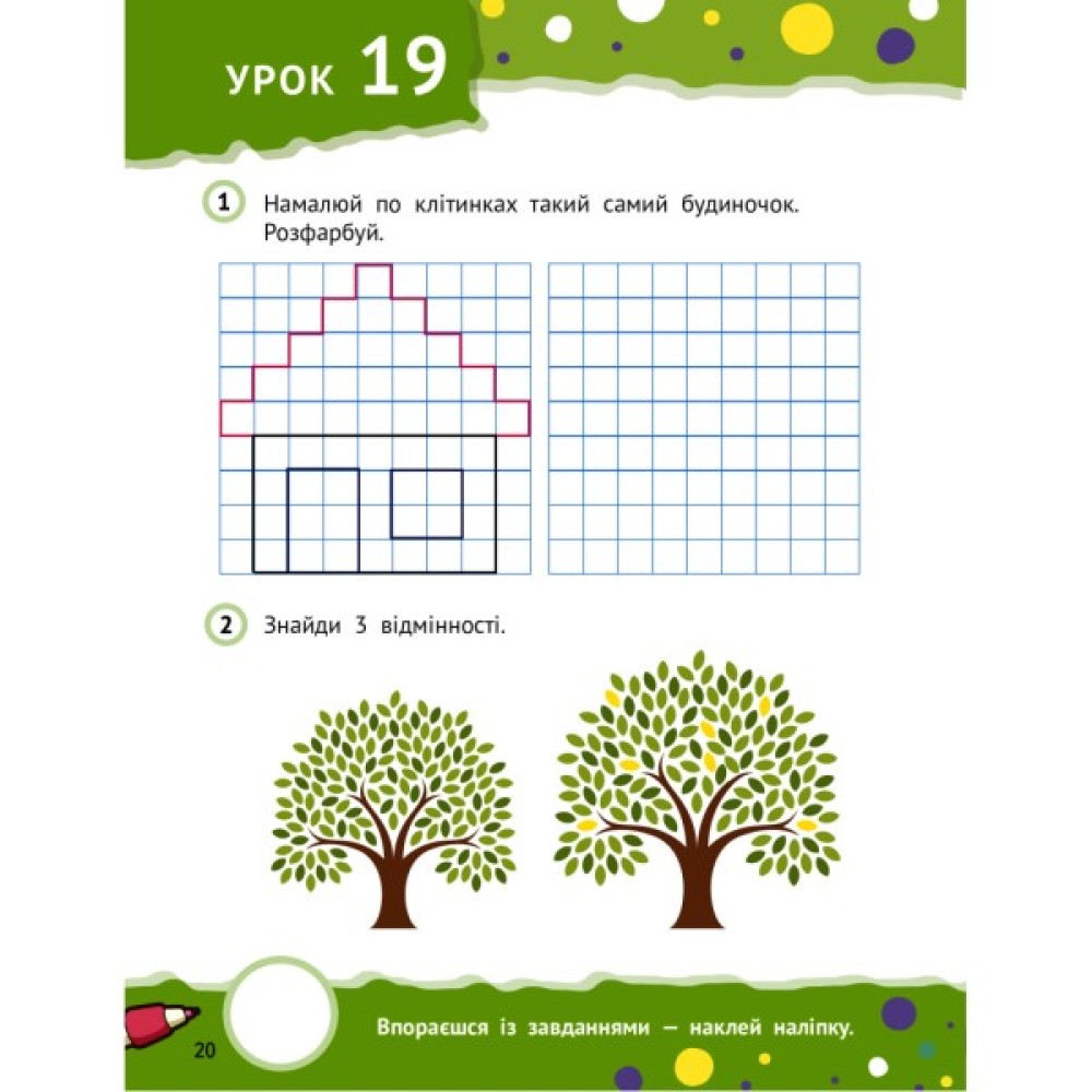 А ще кмітливе дошкільнятко зможе самостійно оцінити результати своєї роботи: виконавши завдання — наклеїть наліпку!