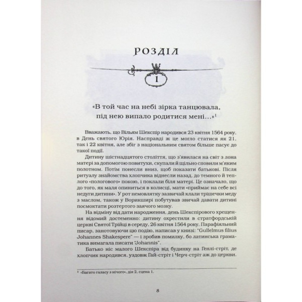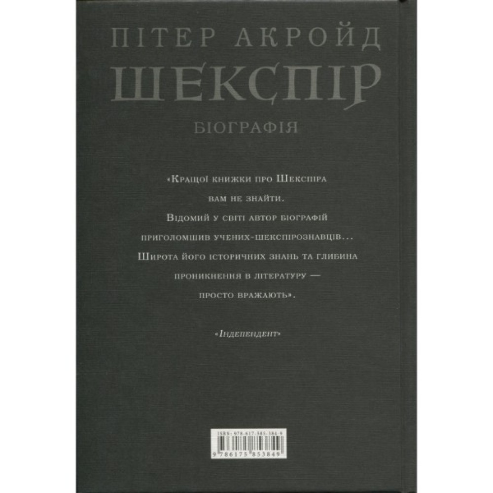 «Кращої книжки про Шекспіра вам не знайти», — стверджує авторитетне видання The Independent. Акройд не припас сенсацій, проте він перший зумів розповісти про одного з найбільших геніїв, помістивши його в живий контекст тогочасного світу. Глибина його проникнення в літературу просто вражає.