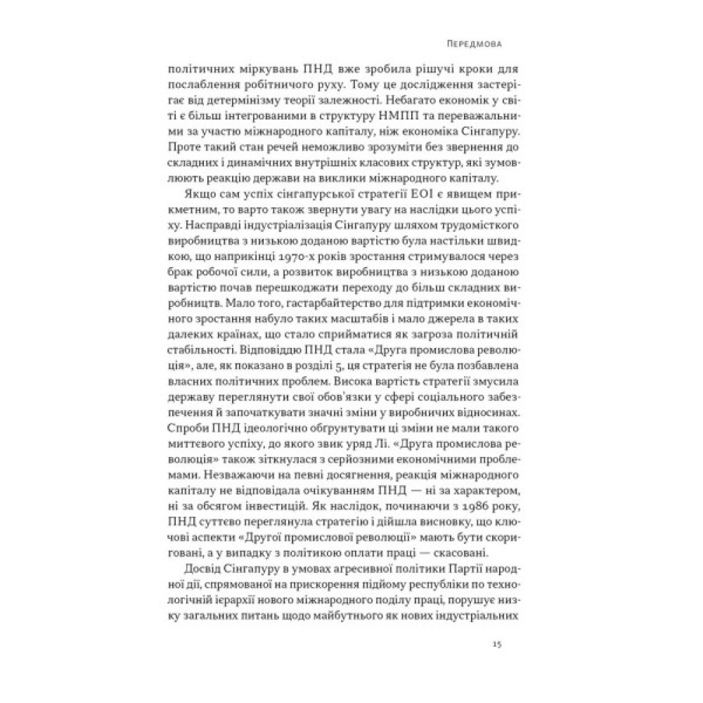 Ця книжка — глибоке дослідження економічної трансформації Сінгапуру. Вона аналізує, як країна здійснила прорив, зосереджуючи увагу на промисловій політиці, державному втручанні та ролі державних інститутів. Автор розглядає ключові моменти індустріалізації Сінгапуру, зокрема стратегії, спрямовані на залучення іноземних інвестицій, створення належної інфраструктури та конкурентоспроможних виробничих секторів, розвиток освіти та меритократії.