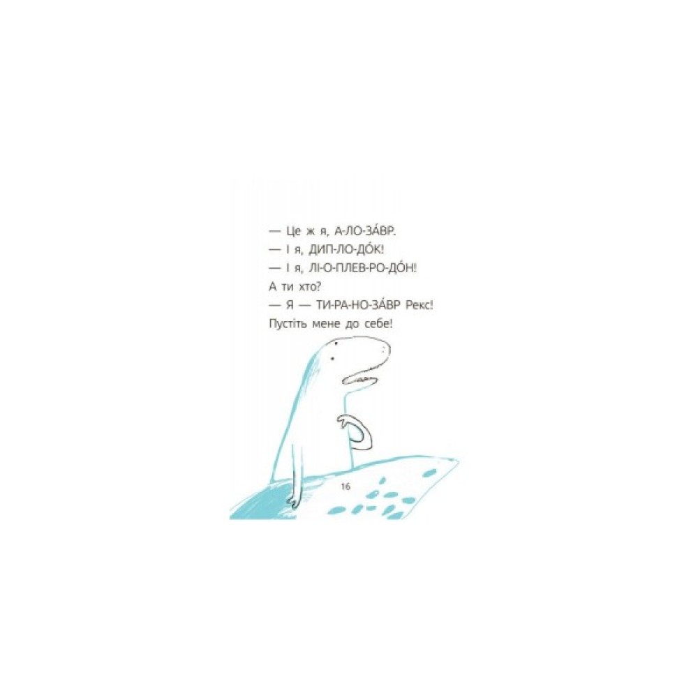 Герой книги Богдан любить динозаврів. Він малює їх, вирізає та ставить на полицю. Однак, коли хлопчик іде до школи, у динозаврів починається власне життя. Оповідання Галини Ткачук – це і несподіване бачення відомої народної казки, і весела історія про дитячу фантазію та неслухняних динозаврів. Книга першого рівня складності.