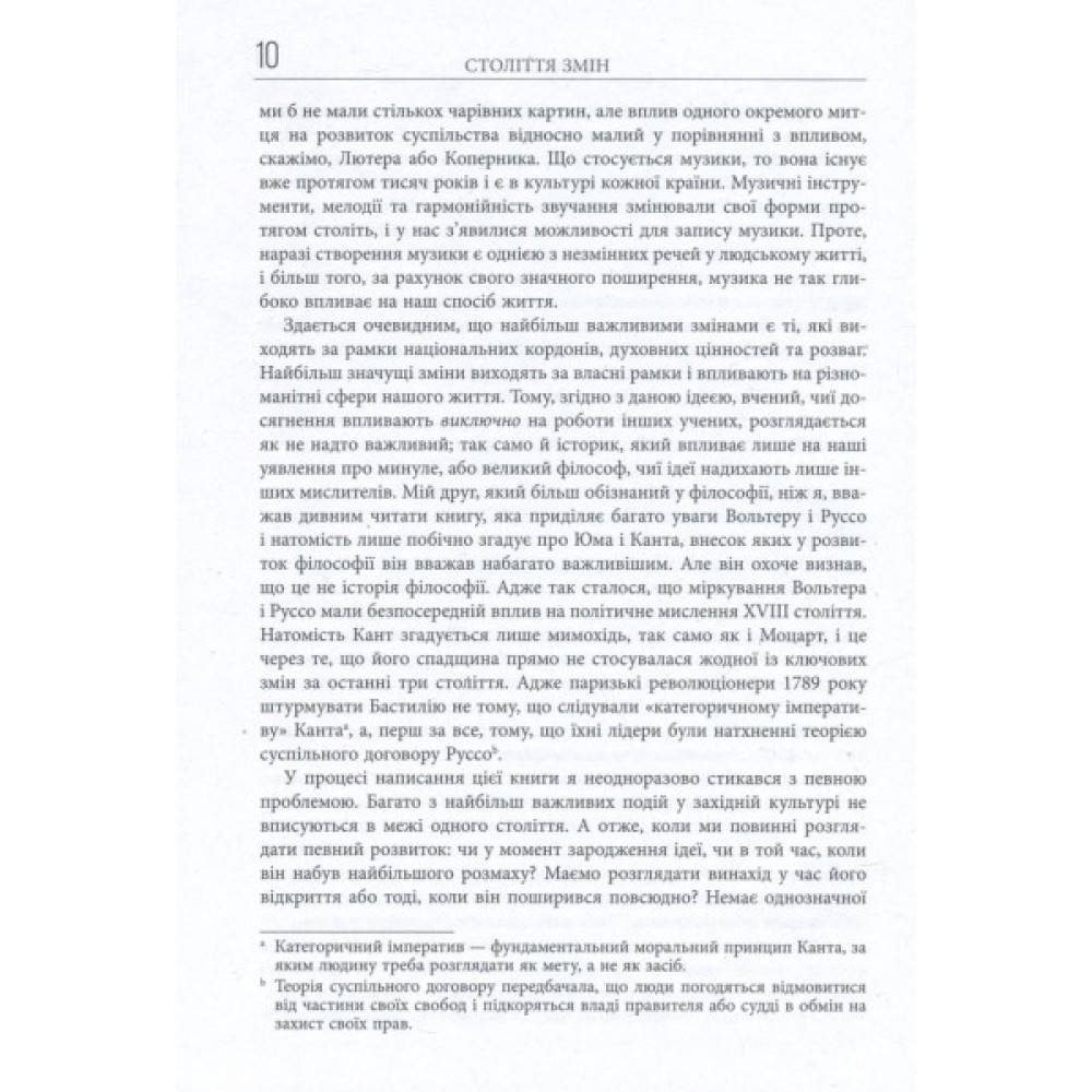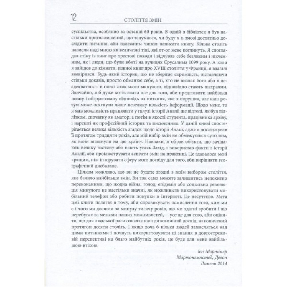 У сучасному суспільстві майже щодня відбуваються суттєві зміни. А чи було так завжди? Чи можна якимось чином визначити, яке століття зазнало найбільших змін? Виявляється, що так. І це з блиском удалося чудовому англійському історику і письменнику Ієну Мортімеру, який ретельно, але водночас дуже цікаво описав і порівняв десять століть європейської історії.