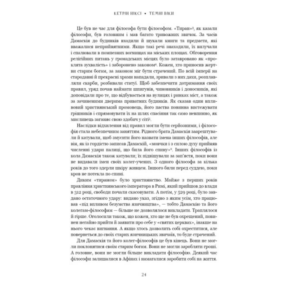 «Темні часи» — це маловідома історія про те, як войовнича релігія навмисне атакувала й придушувала вчення класичного світу, започаткувавши століття беззаперечного дотримання «єдиної істинної віри».