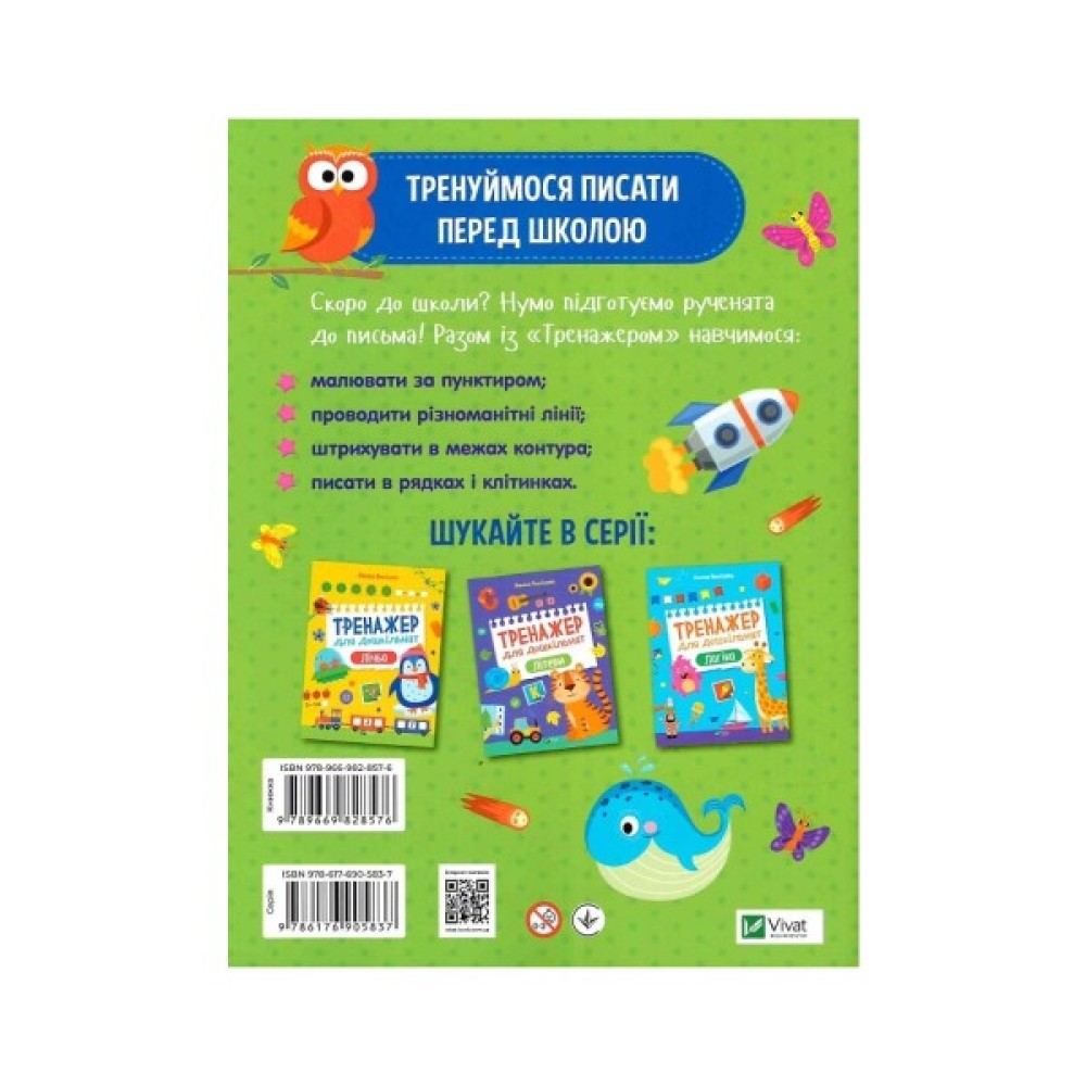 Ваша дитина зовсім скоро стане першокласником. Уміння логічно мислити — одна з найважливіших навичок, яка знадобиться майбутньому школяреві в перші ж навчальні дні. Також дошкільнятко вивчить літери та цифри, підготує руку до письма, розвиватиме уважність, пам’ять та кмітливість. Ці вправи допоможуть якісно підготуватися до занять у школі. Завдання в тренажері розміщені за ускладненням, тож радимо починати займатися з першої сторінки й поступово рухатися далі. Бажаємо цікавих і плідних занять!