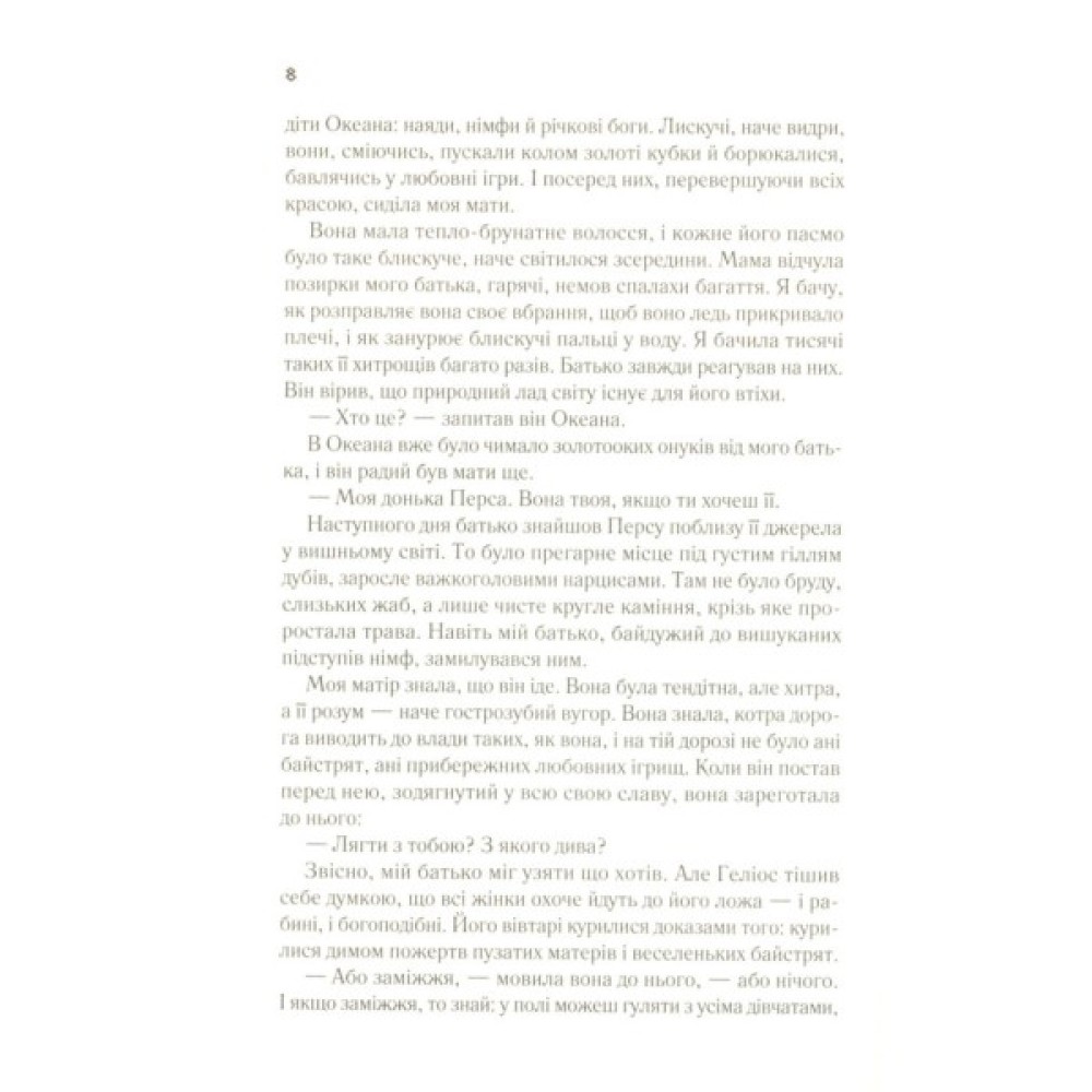 Це історія кохання і втрат, рішучості й невтомної боротьби. Перед вами постане грецький пантеон очима Цирцеї — хитрої чарівниці, підступної красуні-спокусниці. Але це також історія жінки, яка виборює собі місце у світі чоловіків, адже іноді під знайомою поверхнею прихована й інша, глибша історія.