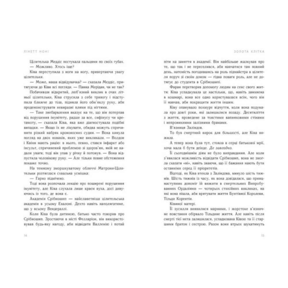 Десятирічне перебування в Заліндові, описане в першій книзі серії, було для Ківи жахливим випробуванням, але воно скінчилося. Проте перебування в королівському палаці родини Валлентісів, серед розкошів, на правах не полонянки, а почесної гості і майже своєї, виявляється випробуванням не меншим. І не лише тому, що поряд той, почуттям до кого Ківа не може дати волю. І не лише тому, що їй треба вести непросту таємну гру, щоб повернути собі відібране. А ще й тому, що вибір між прихильностями та обов’язками виявиться складним і неоднозначним.Як проживе цю ситуацію Ківа і що дізнається про свою родину, найближчих людей, про себе саму? Запаморочлива за сюжетом і психологічно заглиблена, ця частина змусить вас співпереживати Ківі по-новому...