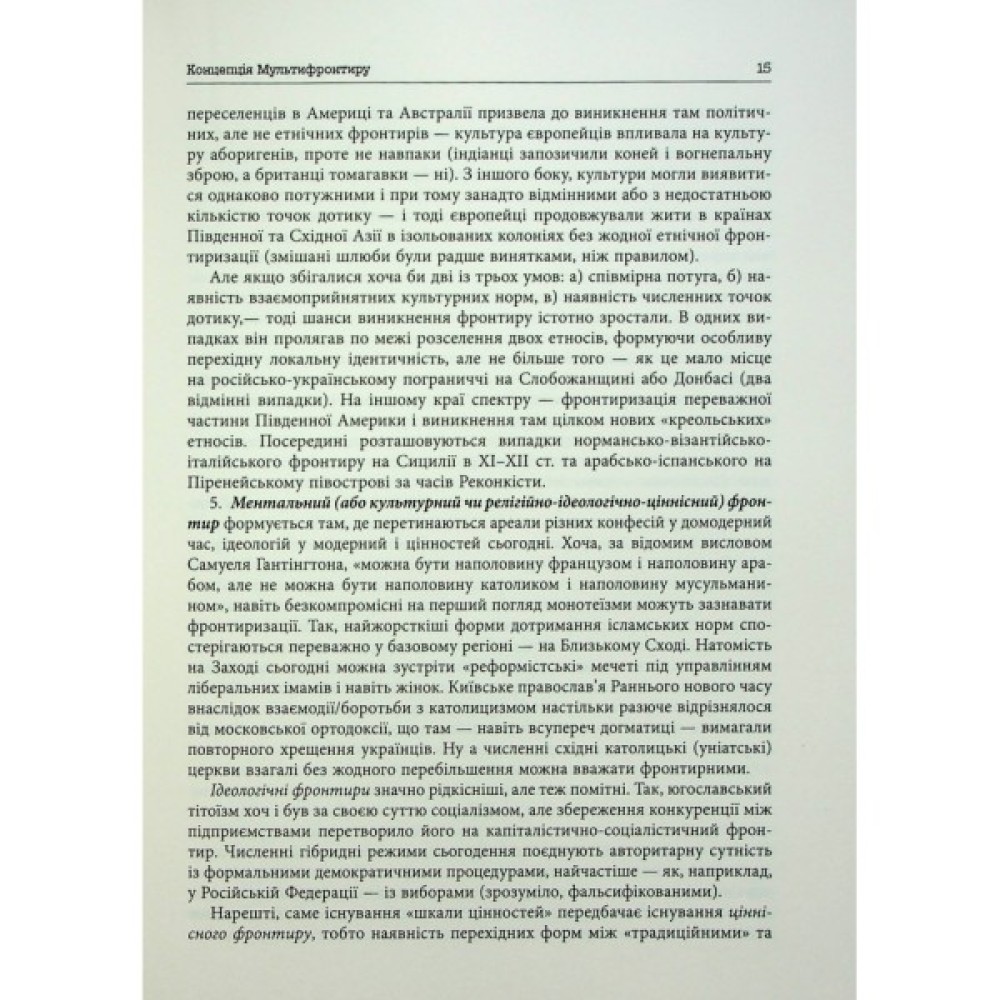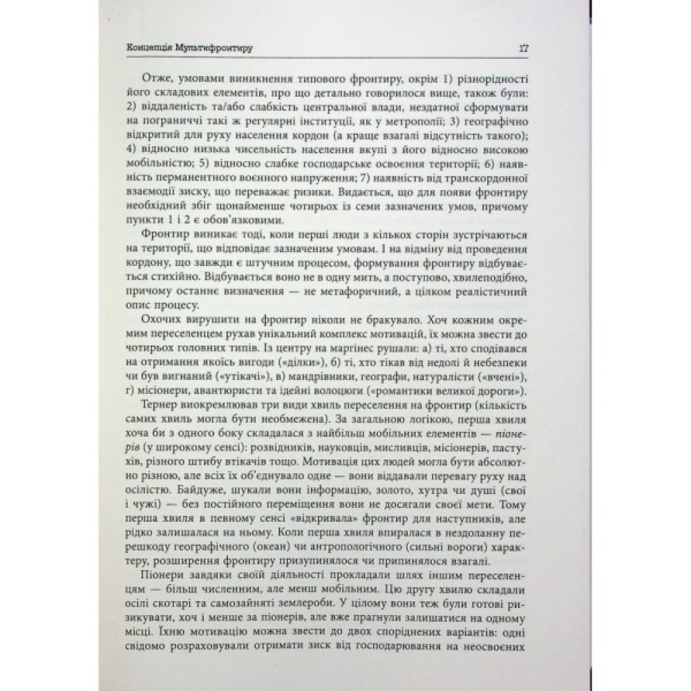 Здається самоочевидним, що розташування України на перехресті Заходу, Півдня і Сходу (комплексів культур, релігій, соціально-економічних моделей і політичних режимів) впливає на її минуле, сьогодення і майбутнє. Однак лише на початку ХХ століття українські вчені почали всерйоз цікавитися цим феноменом і, на жаль, до початку ХХІ століття так і не вивчили його ґрунтовно. Натомість саме дослідження Мультифронтиру — «перехрестя погранич» — не лише дозволить глибше зрозуміти українське минуле, але й допоможе краще впоратися із проблемами сьогодення — зокрема, подолати постколоніальні комплекси народу-жертви, бездержавного або навіть антидержавного народу тощо. З іншого боку, завдяки концепції Мультифронтиру стають зрозумілішими легендарна українська волелюбність та інклюзивність нашої культури.