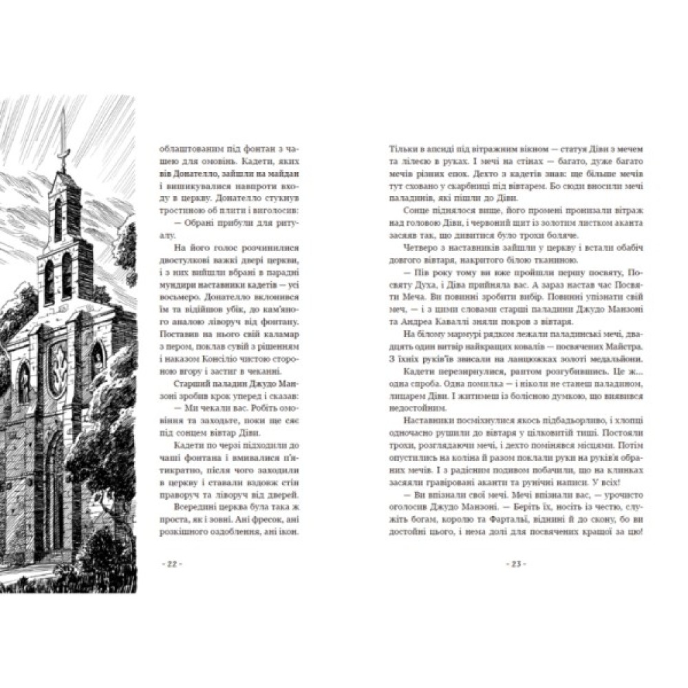 Шалені пригоди й битви зі злом, нудні лекції й виснажливі тренування з мечем і бойовим заклинанням…. Таке воно, життя студентів — майбутніх лицарів Діви. Про його перипетії повідав нам таємничий метр Грахілья, автор знаменитої серії книг про відважних юнаків, які забажали стати учнями Корпусу Паладинів. Але для завершення навчання самого бажання мало. Треба витримати суворий вишкіл і пройти Посвяту Духа та Посвяту Меча. І от не встигли майбутні оборонці людства відсвяткувати церемонію Посвяти, як їх з вогню та в полум'я — давай, підтверджуй ділом право на щойно здобутий меч. Та ще й завданнячка мудрі наставники підбирають… Бестію в підвалі убити, з полтерґейстом розібратися, а то й у склепі початувати…