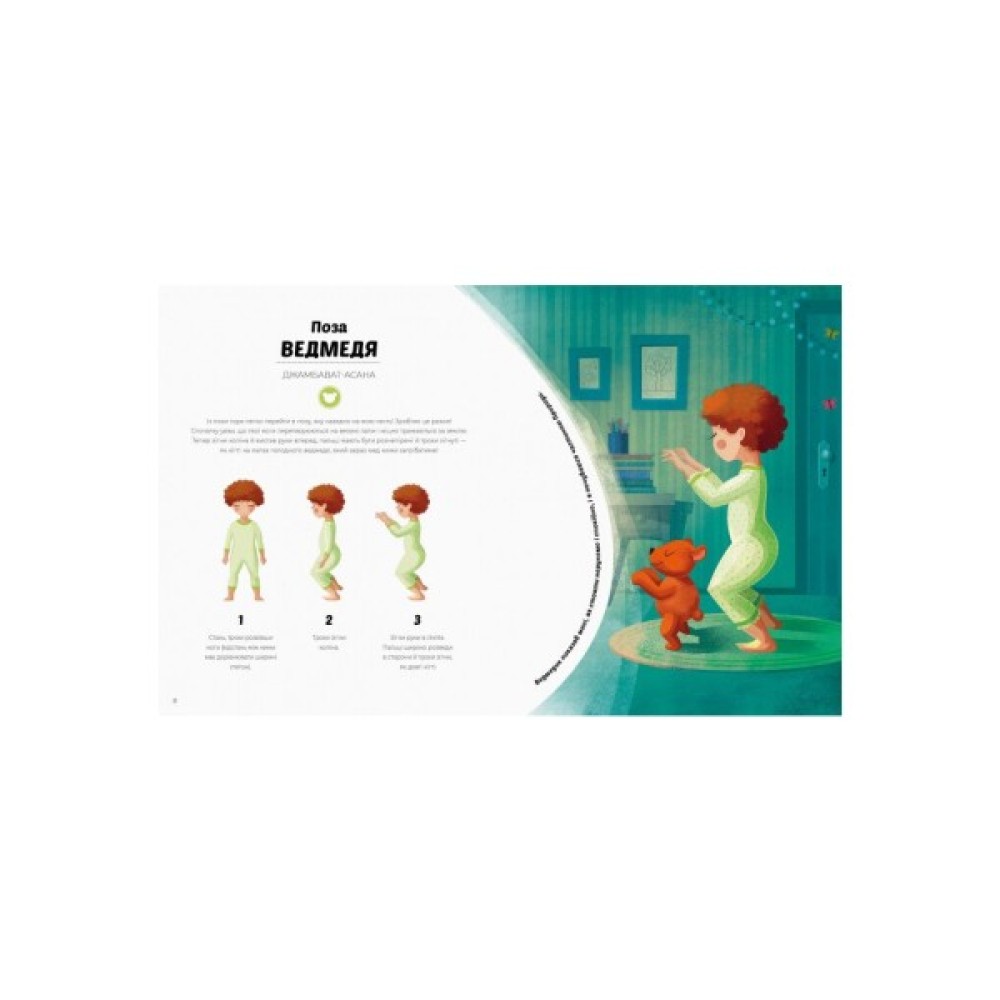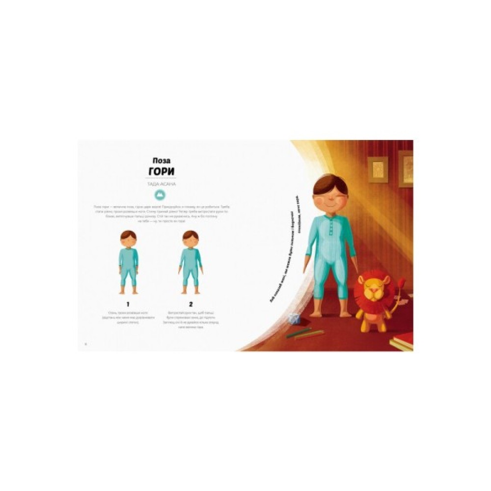 Авторка книжки — засновниця Iталiйськоï асоцiацiï дитячоï йоги — пропонує комплекс вправ, якi лагiдно пiдготують до сну, допоможуть розслабитися й заспокоïтися, аби добре спалось. Шiстнадцять простих поз-асан покроково поясненi i проiлюстрованi — дiтям неодмiнно сподобається виконувати ïх разом iз казковими героями. Завдяки мудростi Давньоï Iндiï ваш малюк засинатиме легше i спокiйнiше!