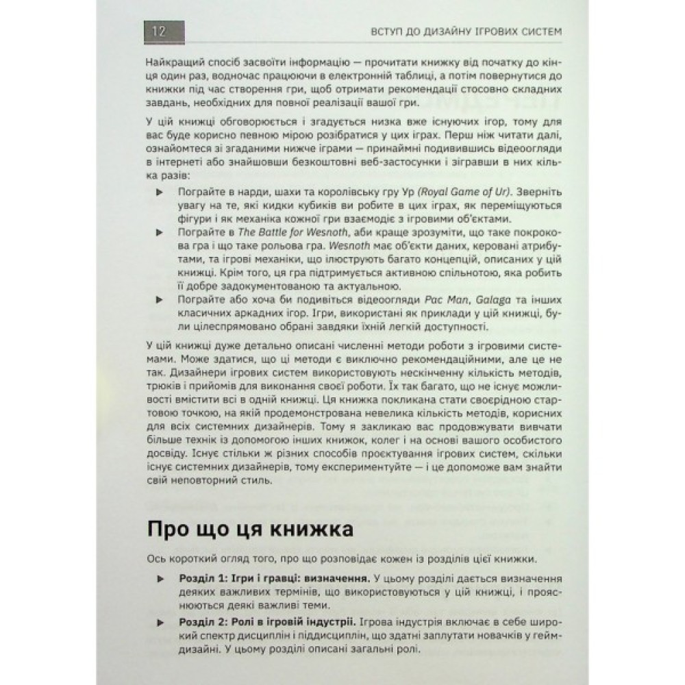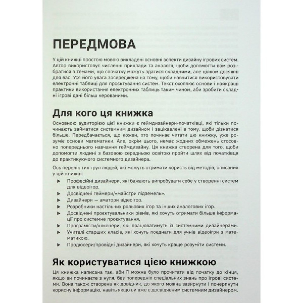 «Вступ до дизайну ігрових систем» — перше повне керівництво для початківців вивчення цієї важливої дисципліни, створене провідним геймдизайнером і коучем Даксом Ґазавеєм. Ця книжка адресована всім, хто робить перші кроки у цій професії, у тому числі й тим, хто не має жодного досвіду. Незалежно від того, чи ви є студентом-першокурсником, інді-розробником, який використовує Unreal чи Unity, або просто геймером, який намагається по-справжньому розібратися в сучасних іграх, Дакс допоможе вам дізнатися саме те, що вам необхідно.