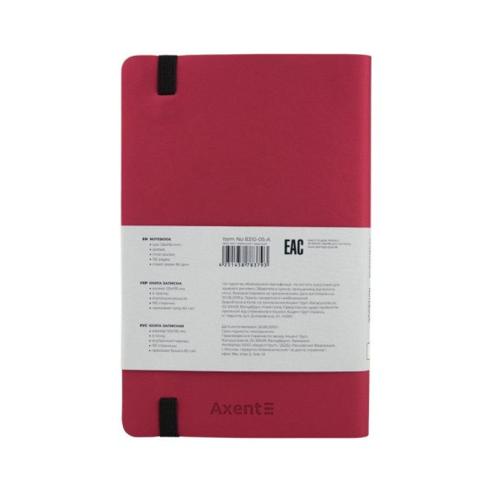 Книга записна Axent із серії Partner Soft призначена для тих, хто цінує яскравий дизайн і максимальну функціональність. Може використовуватися для записів, для планування, як недатований щоденник, для будь-яких ділових і творчих завдань. Особливість записної книжки Partner Soft - м'яка обкладинка з термо PU з приємною на дотик текстурою, а також кольоровий контрастний зріз. Якісний папір щільністю 80г/м2 благородного кремового відтінку забезпечує комфортне письмо, добре вбирає чорнило. Папір у крапку, зручно робити будь-які записи, малювати, креслити. Містить 96 аркушів, формат А5- дозволяє фіксувати багато інформації, і при цьому зручно носити записну книжку з собою. Закладка дозволяє швидко знайти і відкрити потрібні сторінки. Кишеня на форзаці буде надійно зберігати нотатки, чеки, картки та інші важливі дрібниці. Еластична тасьма дозволяє уникнути випадкового розкриття і втрати важливих паперів.