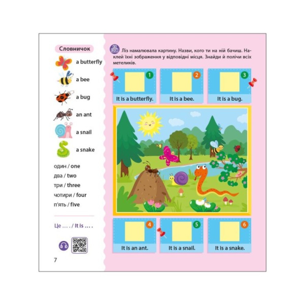 «Англійська з наліпками» — серія для першого знайомства з простою часто вживаною лексикою англійської мови з аудіосупроводом.