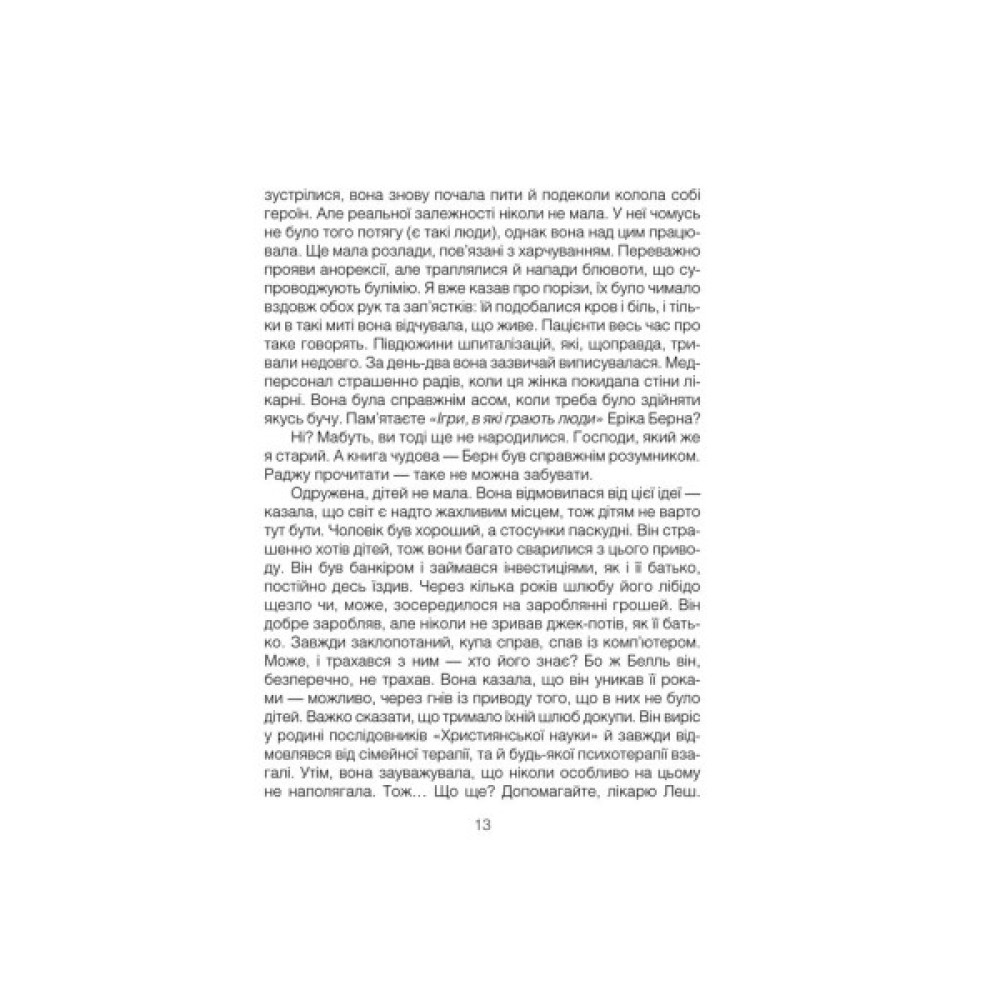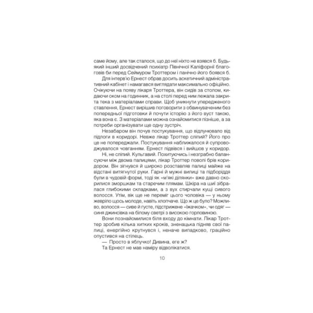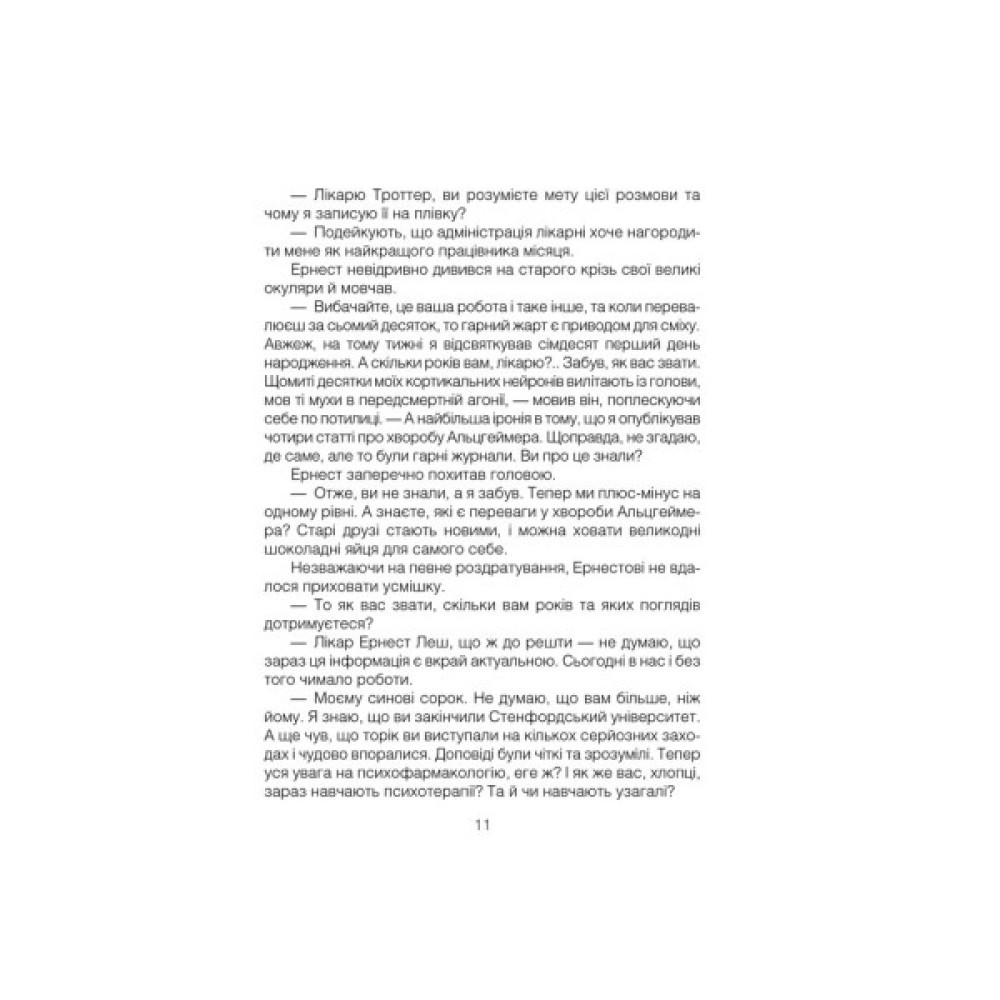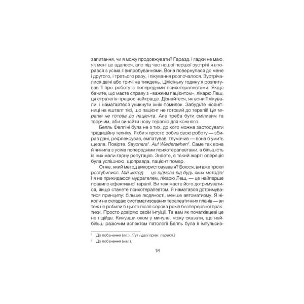За допомогою історії Ернеста Леша, досвідченого фахівця, автор відкриває перед читачем загадковий і не завжди привабливий зворотний бік психотерапії. Які таємниці минулого приховує Ернест, про що він думає під час чергового сеансу, дивлячись на свого пацієнта? І, зрештою, хто такий терапевт: бог чи людина зі своїми хибами та слабкостями? Перед вами – психотерапія без прикрас.