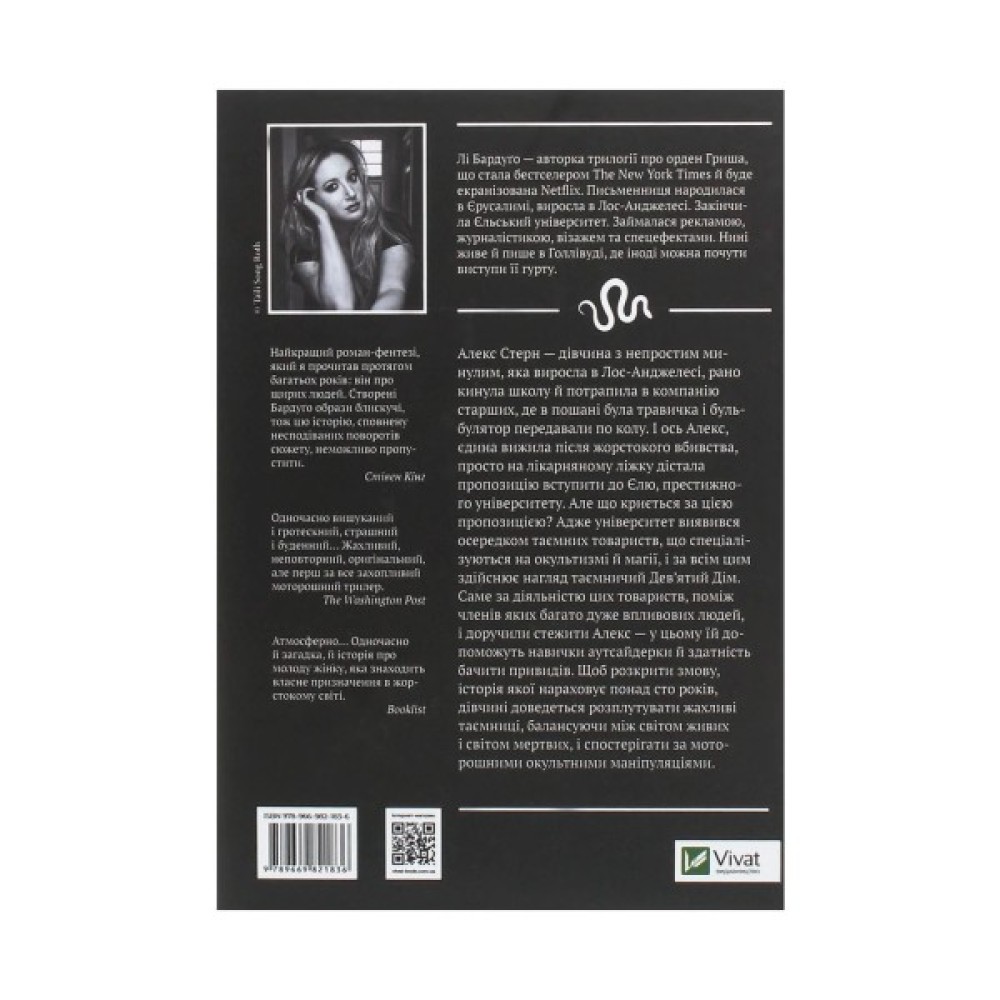 Лі Бардуґо — авторка трилогії про орден Гриша, що стала бестселером The New York Times й буде екранізована Netflix. Народилася в Єрусалимі, виросла в Лос-Анджелесі. Закінчила Єльський університет. Займалася рекламою, журналістикою, візажем та спецефектами. Нині живе й пише в Голлівуді, де іноді можна почути виступи її гурту.