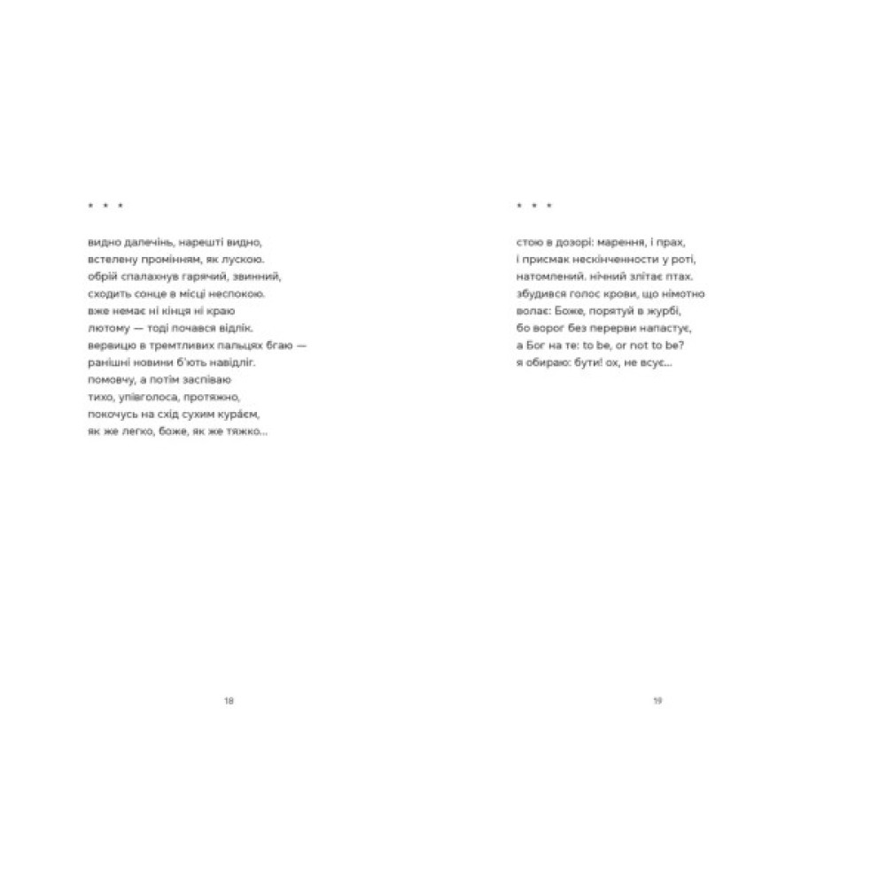 Слова сплітаються у неповторні образи, займаючи з Поетової волі ту позицію, в якій вони і свіжі, і нові, спалахуючи діамантами у дивовижному вінку метафори, даруючи тепло, народжене зі смутку й самоти. Вони — з війни, вони — зі світла і надії.